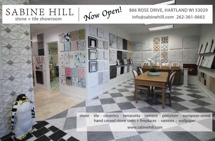 Embrace the pristine and stylish allure of white tiles as you transform your living spaces into havens of peace and enduring elegance. This is just one of Sabine Hill’s gorgeous tile collections. Showroom; 866 Rose Drive, Hartland WI 53029. 262-361-0663. info@sabinehill. com. www.sabinehill.com.