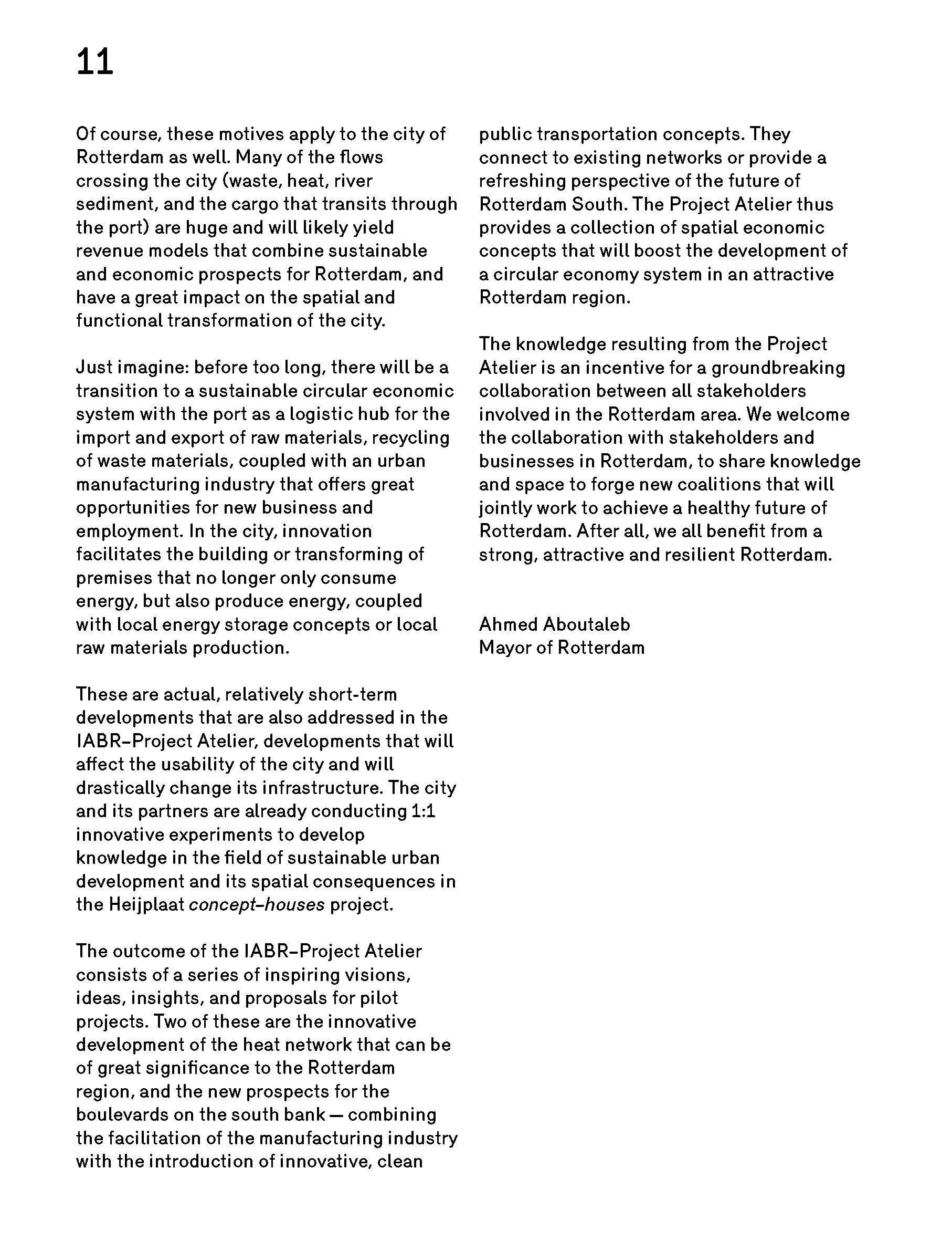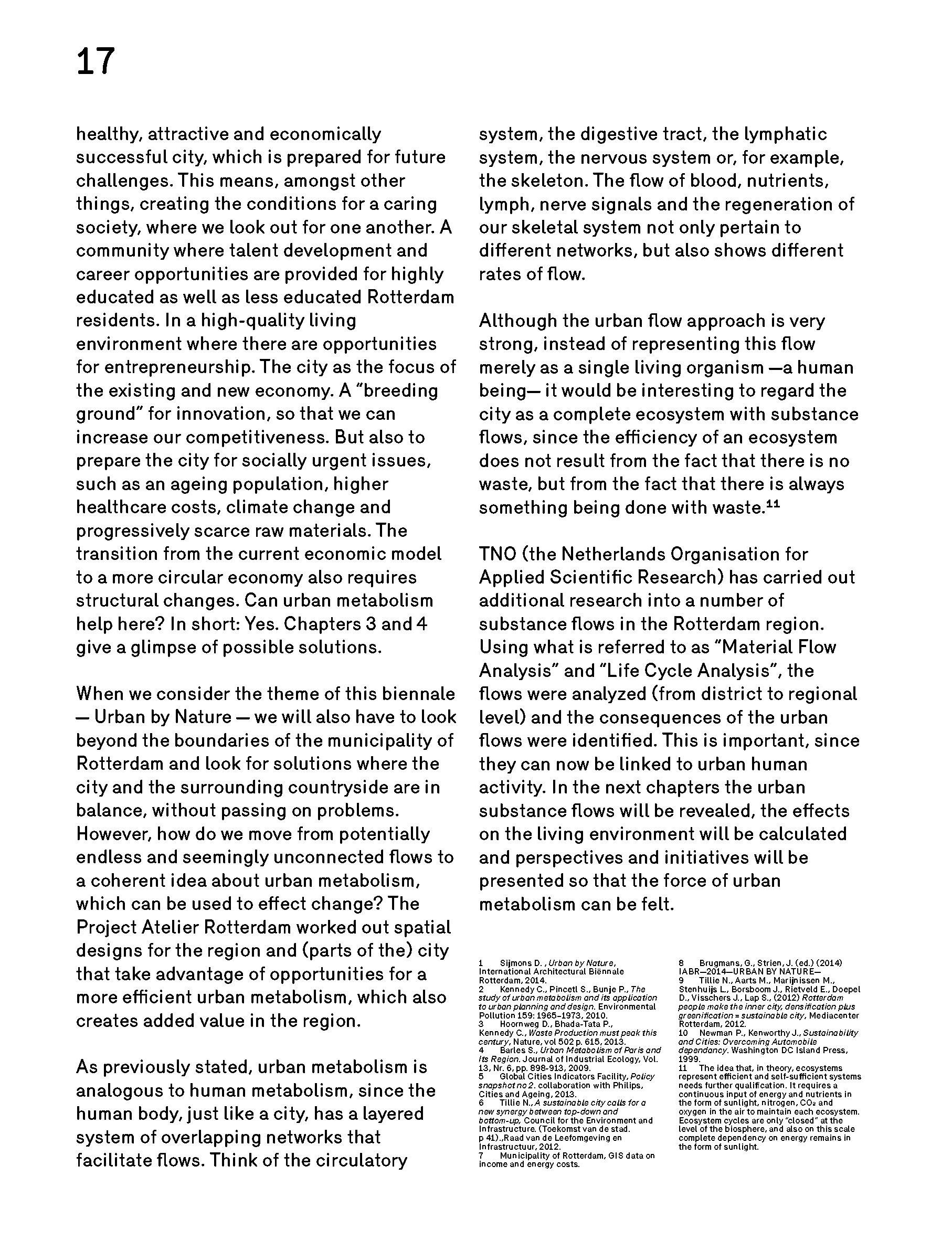 The IABR–Project Atelier Rotterdam, Urban Metabolism, is one of the three IABR–2014– Project Ateliers. The complexity of the city is exposed and studied, and new and unexpected relationships within the city are explored, offering urgent and relevant challenges and opportunities to the Rotterdam area. The research has led to a compelling analysis of our unique urban metabolism, resulting in a collection of spatial economic perspectives, ideas, and insights that will inspire us when building on a strong and sustainable future for the Rotterdam region.