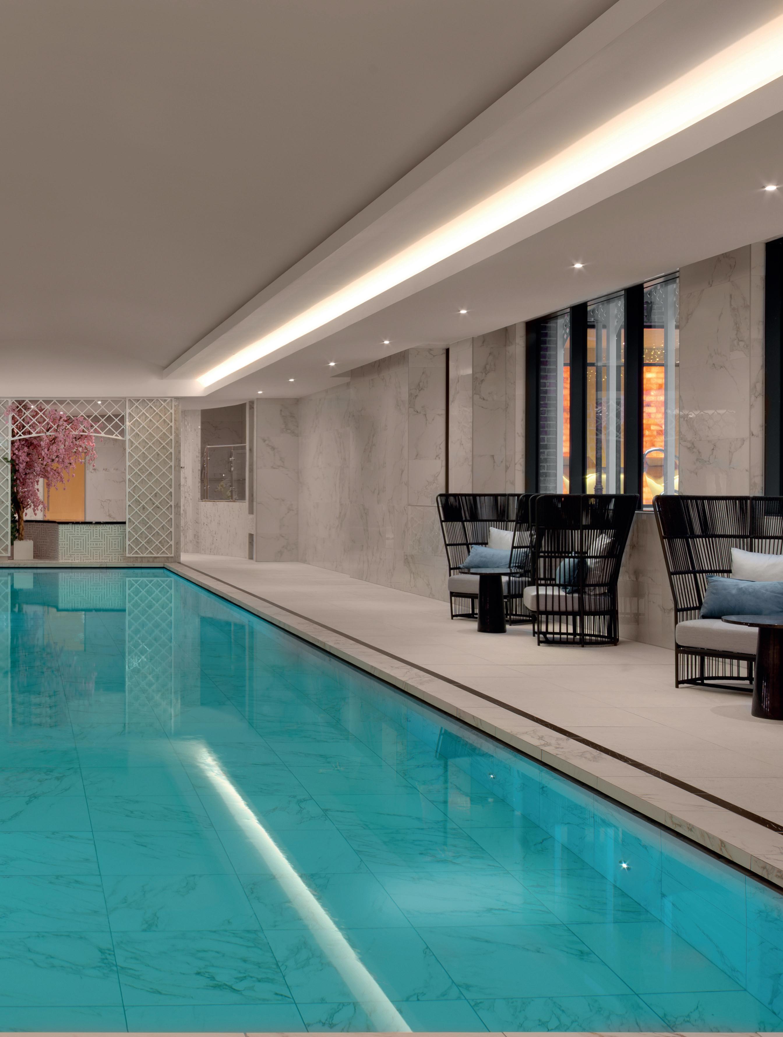 20M INDOOR POOL AND COURTYARD HYDROTHERAPY VITALITY POOL THERMAL SUITE INCLUDING SAUNA, STEAM, ICE FOUNTAIN AND JACUZZI JAPANESE ASHIYU FOOT RITUAL BATH CRYOTHERAPY CHAMBER (CRYOTHERAPY MEMBERSHIP AVAILABLE) SIX-PERSON TRADITIONAL MARBLE HAMMAM PRIVATE SPA SUITE WITH RASUL & JACUZZI THREE OUTDOOR TENNIS COURTS TWO OUTDOOR PADEL COURTS INDOOR AND OUTDOOR GYM HEALTH ASSESSMENTS WITH LIFESTYLE REVIEW TRIM TRAIL 4D SCANNING ACCURATE TO WITHIN 3MM WELLNESS SUITE, MIND & BODY STUDIO, REFORMER STUDIO AND GROUP CYCLING STUDIO OUR FACILITIES
