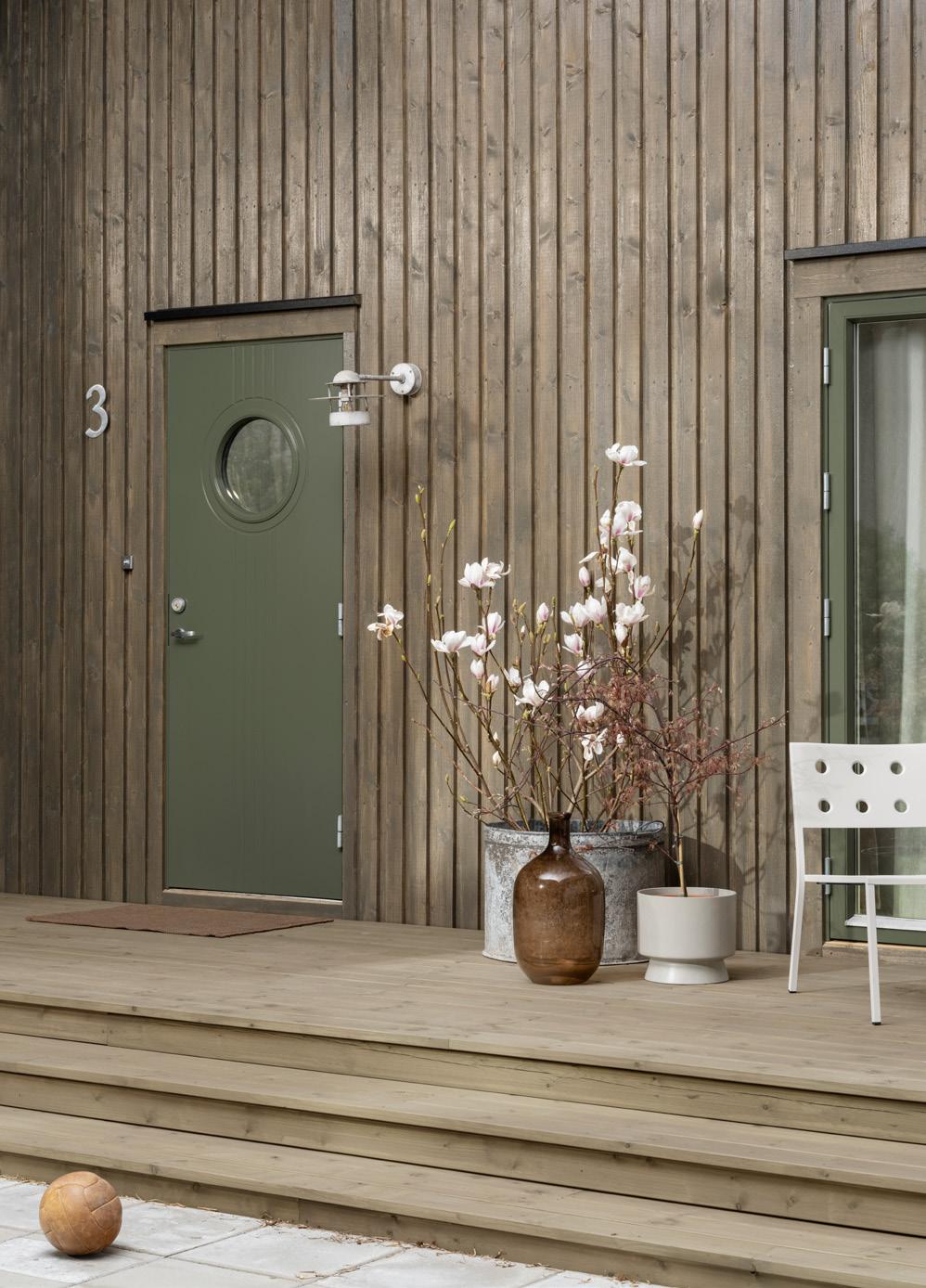 VEGG: TREBITT 9052 EKSOTISK TRE DETALJER: JOTUN 1453 BOMULL TERRASSE: TREBITT TERRASSEBEIS 9073 SHIMMERGRÅ