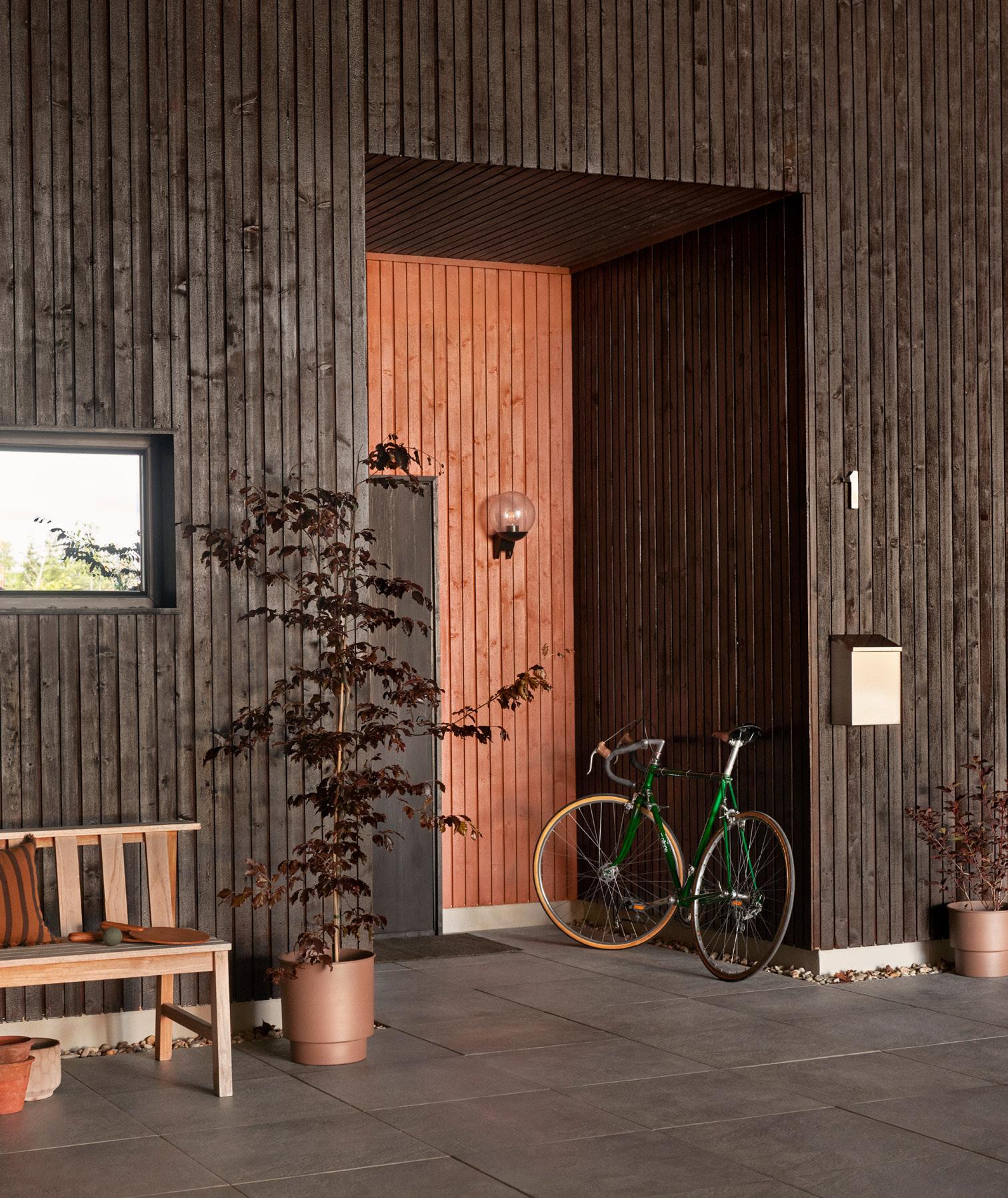 FORSIDE: VEGG: TREBITT 9054 NATURLIG ELDET BENK OG TERRASSEGULV: TREBITT TERRASSEBEIS 90028 SKYGGEBRUN