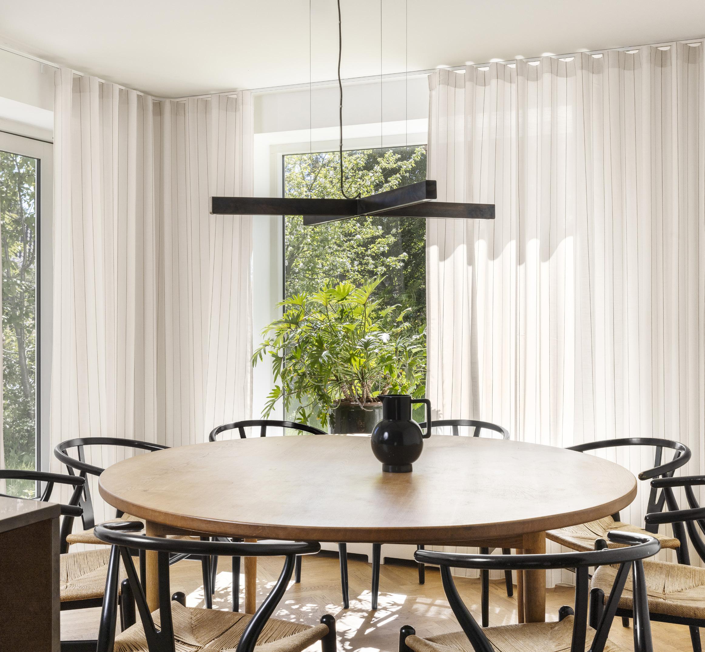 Roomwide textiles are perfect in houses where the ceiling is higher than 300 cm, and you want long curtains from ceiling to floor.