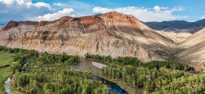 Goose Creek Ranch consists of 35 productive acres with Elk River frontage and two stream-fed ponds. It boasts close proximity to Steamboat Springs. The five-bedroom house and guest cabin are situated in a park-like setting with tall shade trees, a small brook, and beautiful landscaping. A tastefully finished recreational building features one-and-ahalf bathrooms and additional laundry. The historic 100-year-old barn, with wide plank wood floors and a huge hay loft, is fully functional with stalls and a tack room. The pastures are irrigated with water rights and are in pristine condition. Contact Christy Belton, 970-734-7885. $4,225,000.