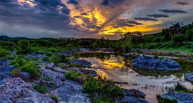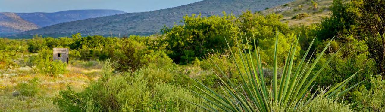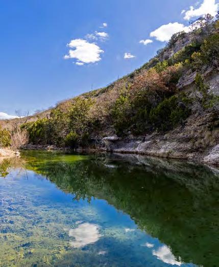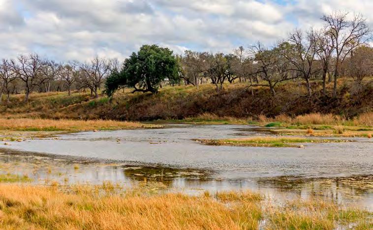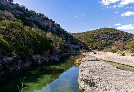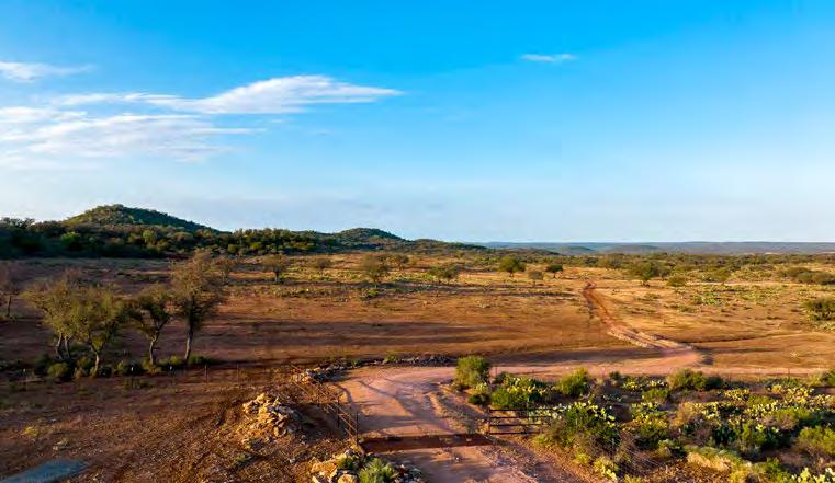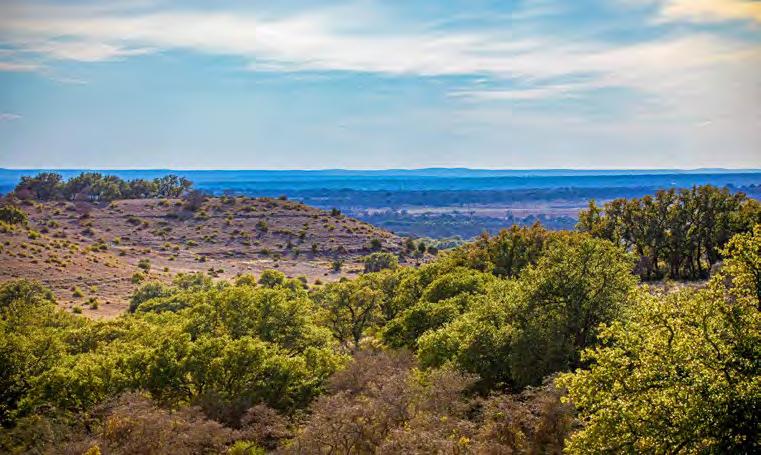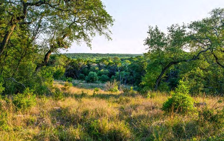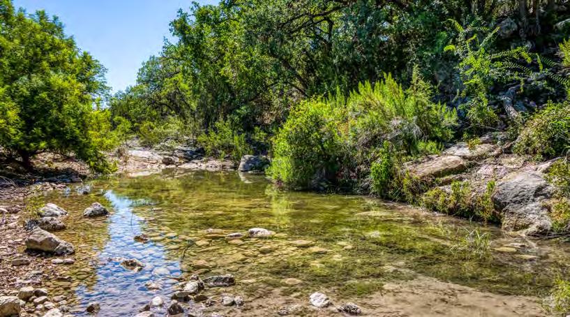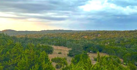 T he Enlightening Ranch is a 302.22acre, high-fenced hunting getaway in the Kerr County Divide area. The land is suitable for cattle, horses, sheep, or goats. Two hunting cabins are currently being renovated. A submersible well supplements a stocked pond and the water troughs. An intense cedar clearing project has been under way and several Indian mounds have been located, as the ranch borders an 11,000±acre ranch near the North Fork head of the Guadalupe River. This is a highly desired area, featuring water, wildlife, beauty, seclusion, and proximity to the amenities of Kerrville, TX. $2,871,090. Bill Barton, Broker-Assoc.
