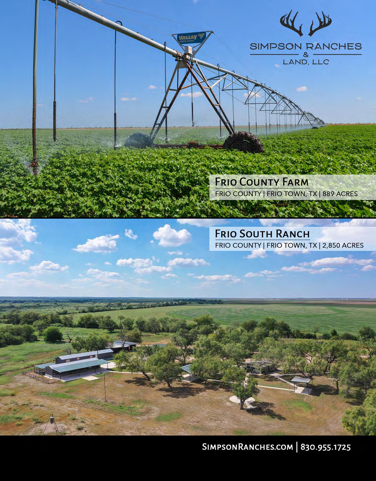 This property is located 45 miles west of San Antonio and five miles southwest of D’Hanis, TX. It is an excellent hunting retreat with good habitat for deer and dove, scattered Oak trees, and favorable soil. It is located on County Road 514 just west of Squirrel Creek Road. There is a 1,600-square-foot (MCAD) Stucco home on the property and a wildlife exemption in place. $995,000. Mark Meek, Broker.