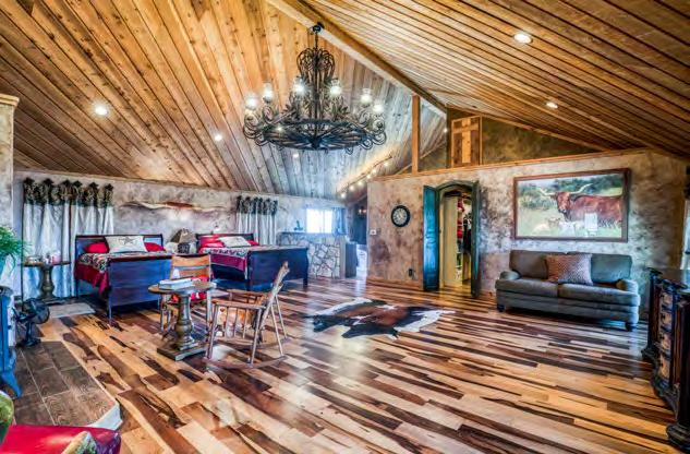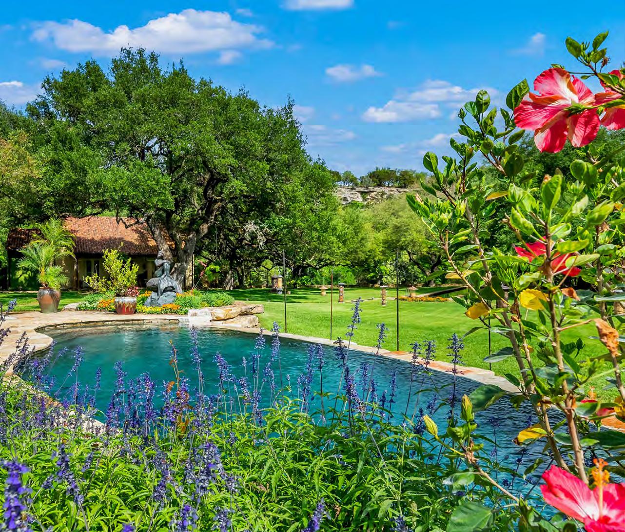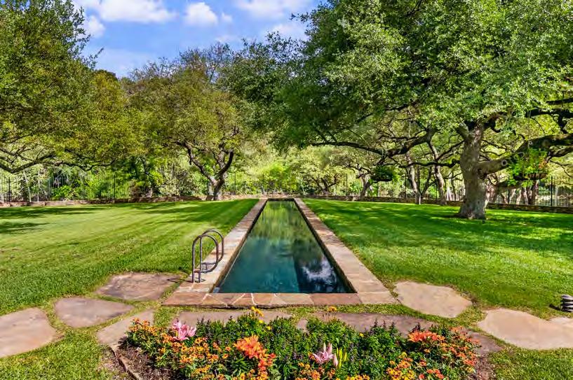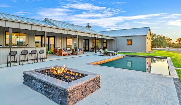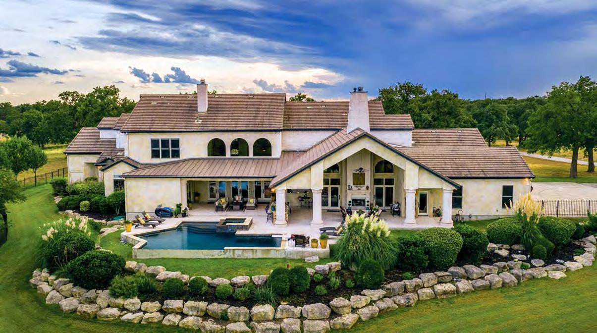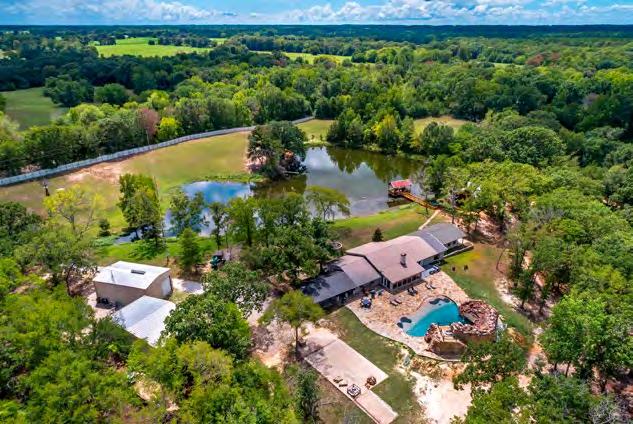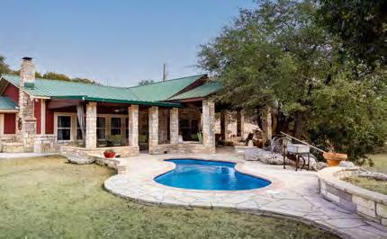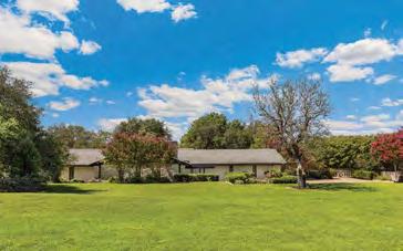 Located on five lush, wooded acres in Red Oak Ranch, this one-story custom home is every equestrian’s dream! Enjoy direct access to miles of dedicated horseback riding trails. Highlights include a gated entry, five-car garage, double circular driveway, a new roof, water well, new LED lighting, and wheelchair accessibility throughout the house. Additional features include a lavish formal dining room with adjacent butler’s pantry and a wood-paneled study with an attached separate study. A magnificent sunroom has views of the beautiful pool and a dual-sided fireplace. The owner’s retreat offers a relaxing bath and bonus room, ideal for a home gym. The chef’s kitchen has a LaCanche gas range, ice maker, wine grotto, built-in Miele coffee maker, and pot filler, plus it opens to the breakfast room and den. Four additional bedrooms with walkin closets and two separate apartments are attached to the garage. The private fenced backyard features a covered patio, outdoor kitchen, gorgeous pool, and four-stall barn with tack and feeding room. There is a wellmaintained riding arena available exclusively for owners. $2,675,000.