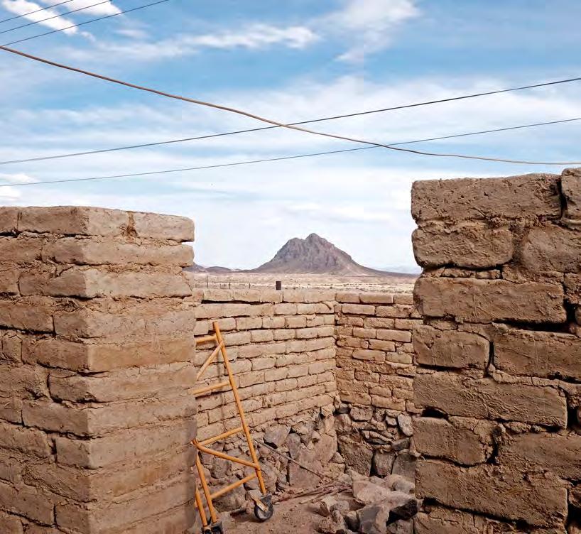 The bricks were tests, Benton explains. Excessive clay can crack a brick. Fibrous sotol can be hard to incorporate. Too much sand makes a brick crumbly. “At the end of the day we had a conversation about what’s working,” he says. “We’re developing field tests we can use as standards for future projects. We’re going to come up with tests that we can do to each brick, catalog them all, and see what’s behaving better and find our best brick.” Among the questions they will address: What advantages does horse manure present over sotol fiber? How do bricks perform when water is applied? How much pressure will make one break? “There are ten thousand years of recipes,” Benton says, beaming. “There are lots of ways to make that cookie.”