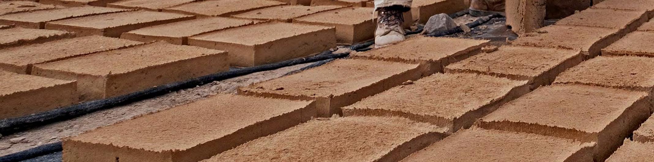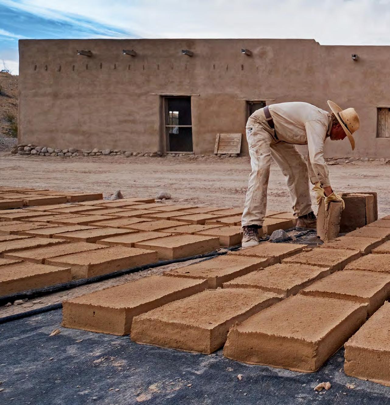 one another at workshops or work sites, at volunteer opportunities or brickmaking parties, through an adobe art project or a friend of a friend getting help with a fixerupper. In the spirit of building with adobe, experienced people work alongside greener compatriots, with the same goal of getting a job done. “It’s a community-driven process,” says Joey Benton, owner of Silla, a Marfa design/build company that has, in recent years, focused on adobe work. “You can feel it. It’s a nice way to go to bed at night. We made some bricks, I worked with people I like, we laughed, had a nice meal. It feels good.”