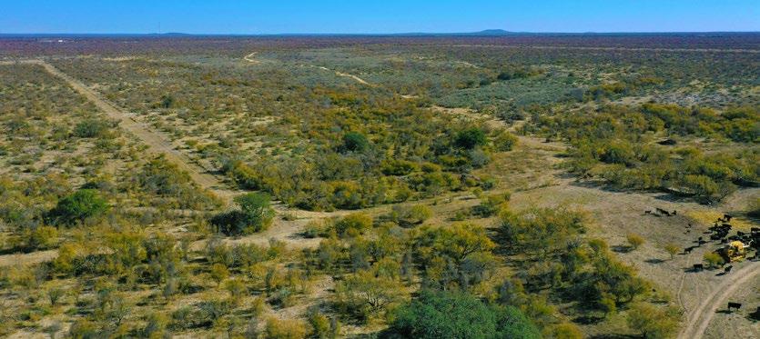 LaBrisa Ranch is a diverse hunting and cattle ranch with a well, two tanks, hay barn, four-bay horse barn, pipe arena, and pens. It boasts a Spanish-style, three-bed, four-bath home with a twobed, two-bath guest house, pool, and cantina with workshop. The property features West Squirrel Creek. $2,800,000.