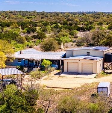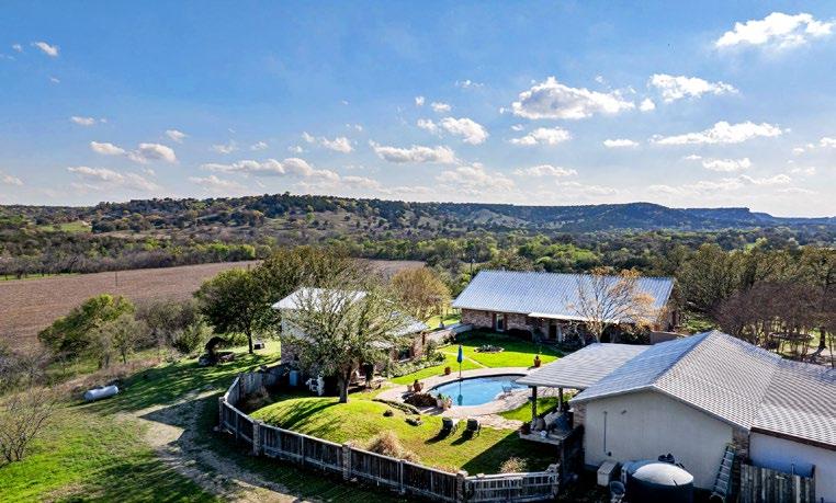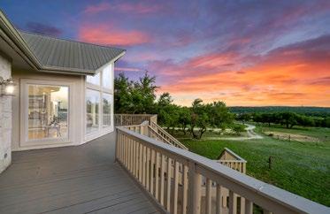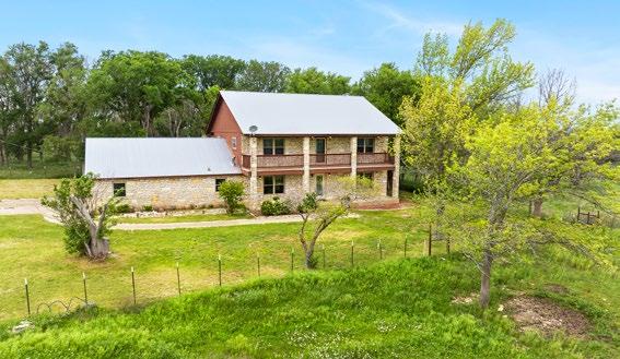 Seeking a home for your horses, hobbies, and room to grow? This 1985 homestead, just northwest of Austin, includes a 4,517-squarefoot home with five bedrooms, plus an upstairs office/flex room, three-and-one-half bathrooms, and metal roof. Enjoy the sprawling views from covered front and back balconies and porches. Additional facilities include a three-stall workshop and five horse stalls plumbed for automatic watering. The property has full perimeter fencing and is crossfenced. The house is serviced by Georgetown city water; the farm acreage serviced by an on-site well. Horses, cattle, and Texas sunsets are in store once you call this ranch home! $985,000. MLS 535537