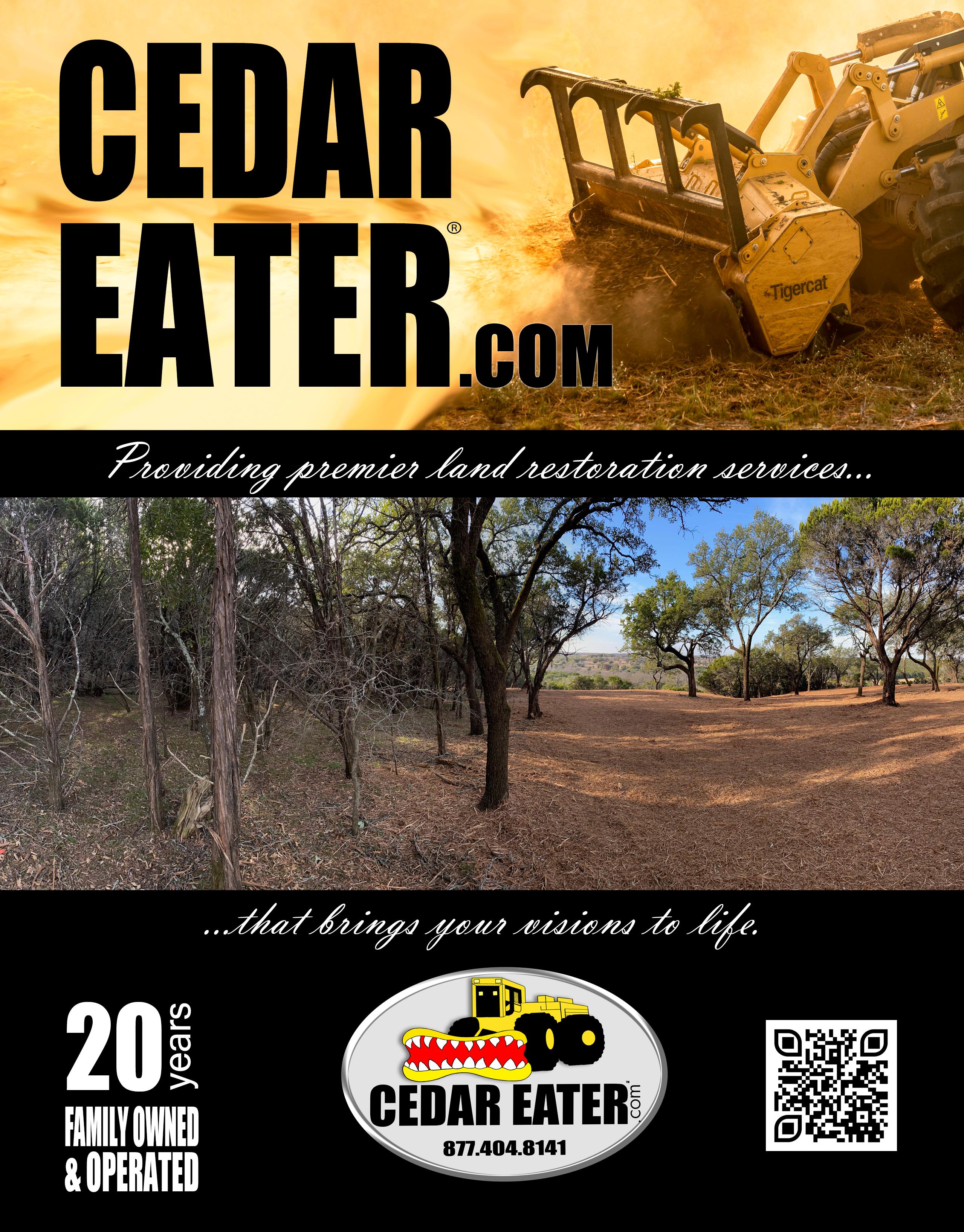 ©Copyright 2024, Farm & Ranch Publishing, L.L.C. All rights reserved. No part of this publication may be reproduced without written permission from the publisher. Farm & Ranch is published four times per year by Farm & Ranch Publishing, L.L.C. 2 Spencer Road, Suite 101, Boerne, TX 78006. Information provided to Farm & Ranch Publishing, L.L.C. is deemed reliable but not guaranteed. The publisher will not be responsible for any omissions, errors, typographical mistakes or misinformation within this publication. Measurements and figures are approximate. Properties are subject to errors, omissions, price change or prior sale. Printed in the U.S.A.