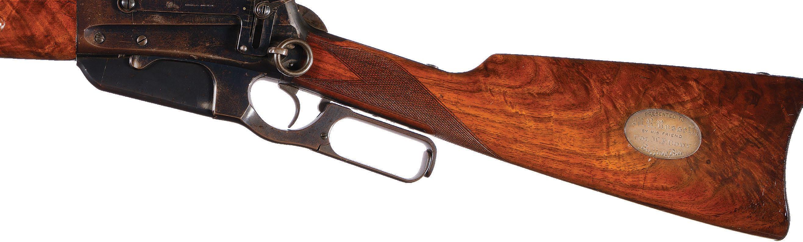 Rare, Historic and Extraordinarily Well Documented Winchester Deluxe Model 1895 Lever Action Saddle Ring Carbine Presented by Buffalo Bill (William F. Cody) to Deadwood Businessman and Friend M.R. “Gold Nugget Mike/Deadwood Mike” Russell with Factory Letter Excellent Documented Fort Worth, Texas Sold Factory Engraved Colt Single Action Army Revolver with Pearl Grips and Factory Letter Rare Documented Colt “Texas Paterson” No. 5 Percussion Revolver with Loading Lever Fine, Historic, & Investment Grade Firearms Premier Auction August 23 rd , 24TH & 25TH FOR YOUR COMPLIMENTARY CATALOG CALL 800-238-8022 (REFERENCE THIS AD) Rock Island Auction Company Bedford, Texas Not All Art is Framed Catalog Available July! WWW.ROCKISLANDAUCTION.COM RIAC IS ALWAYS ACCEPTING QUALITY CONSIGNMENT, ONE GUN OR AN ENTIRE COLLECTION! Call: 800-238-8022 or Email: guns@rockislandauction.com 3600 Harwood Road, Bedford, TX 76021 ∙ P: 800-238-8022 ∙ F: 309-797-1655 ∙ info@rockislandauction.com ∙ Fully Licensed Class III Auctioneer ∙ Auctioneer: Patrick Hogan (#18366) ∙ Buyers Premium 17.5% ® ® Buffalo Bill
