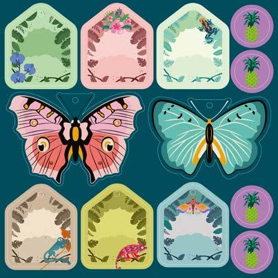 3 planches d’étiquettes et d’éléments décoratifs prédécoupés