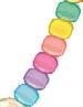 1 Coupe des fils de 50 cm : 1 rose, 1 mauve, 2 bleus et 2 dorés. Noue-les ensemble en leur milieu.