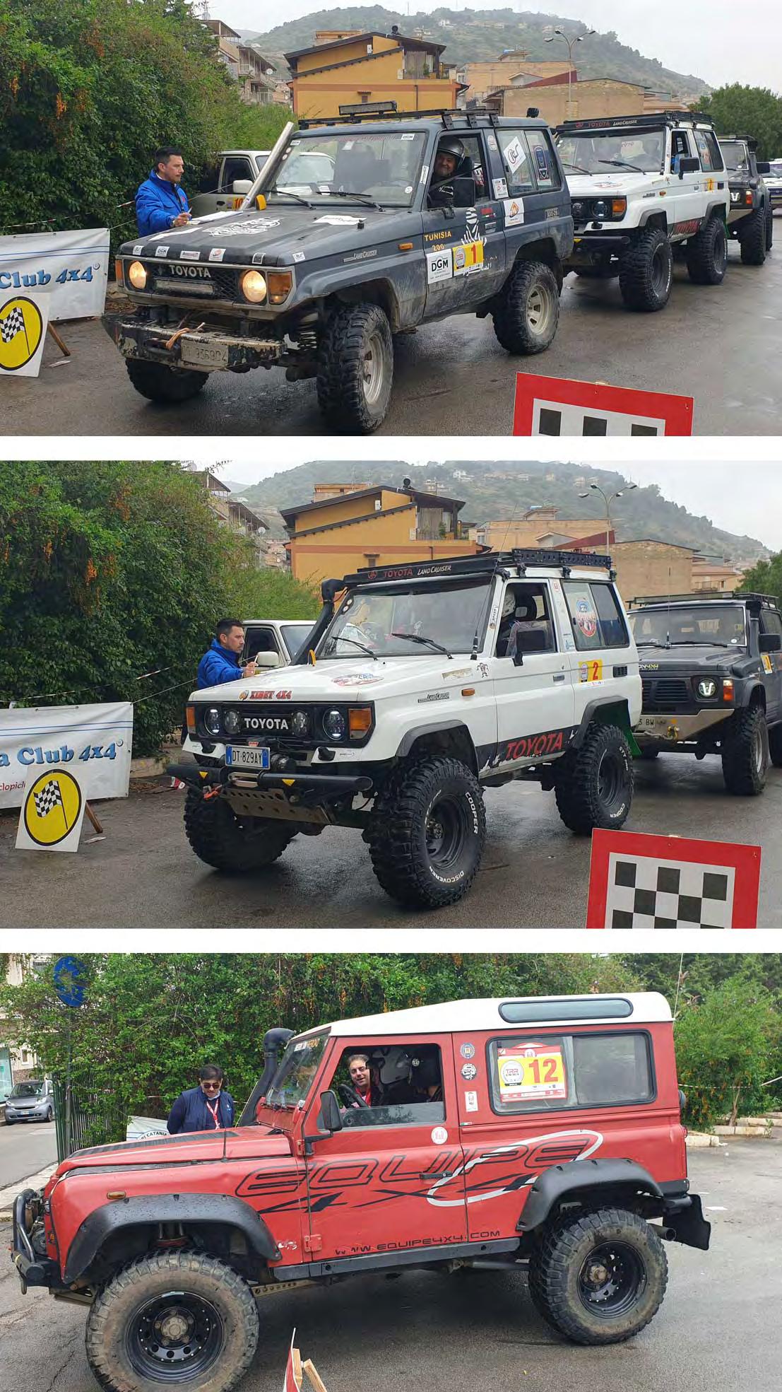Gruppo Blu 1. Di Marco-Macchia Land Rover Defender 3 2. Di Biase-Di Biase Suzuki Jimny 12 3. Giardiello Pasqualino Range Rover 19 Gruppo Bianchi 1. Ciervo Giuseppe Jeep Wrangler Rubicon 154 2. Lanaro-Giordano Land Rover Discovery 154 3. Barra-Caruso Mercedes GD 250 166 Gruppo Rossi 1. Graziadio-Miniaci Suzuki Vitara proto 167 2. Di Caprio-Scioscia Suzuki SJ410 proto 686