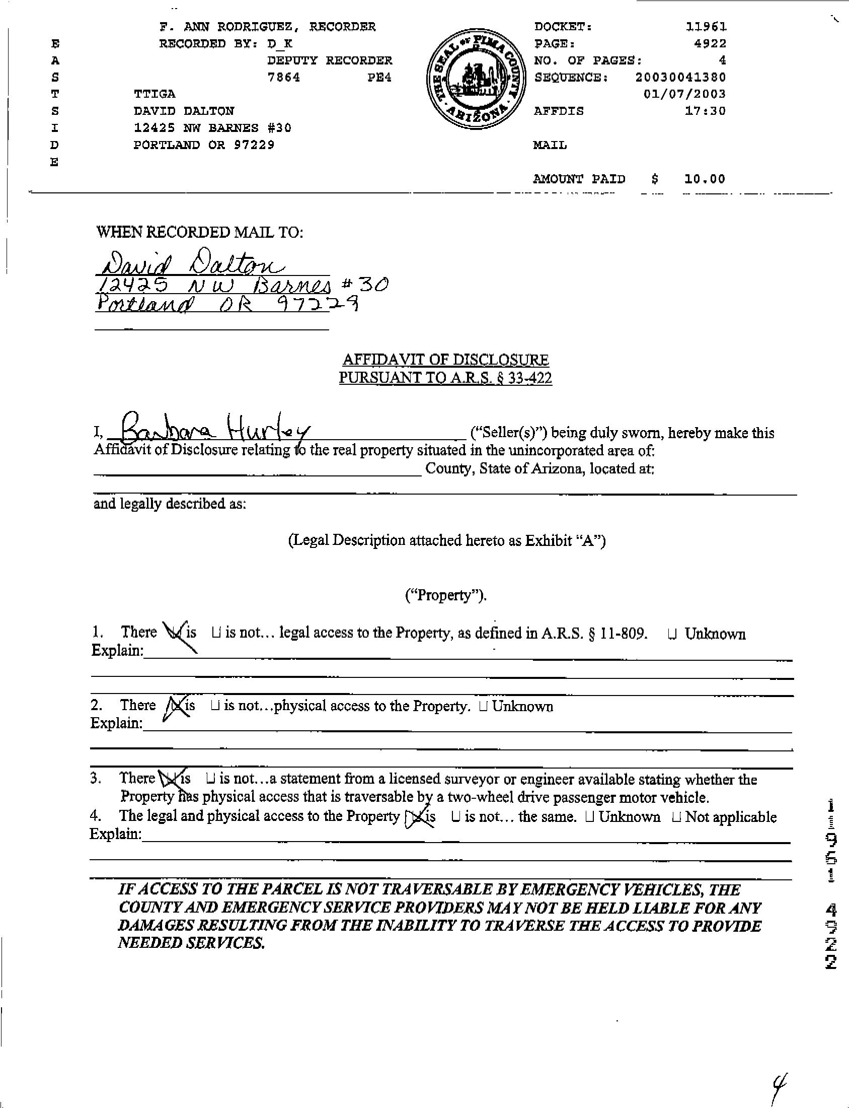 Owner Name : Pima County Recording Date : 05/26/1998 Sale Date : 05/00/1998