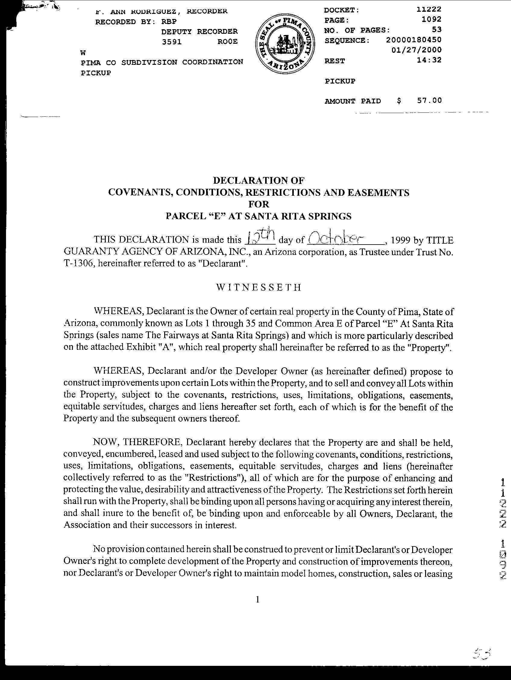 Legal Description : Parcel E At Santa Rita Springs Resub Lot 5 Cagrd 0