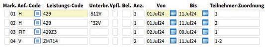 > Bei Buchungen mit Anreise muss die Anreise-Zeile vor der Hotelzeile stehen.