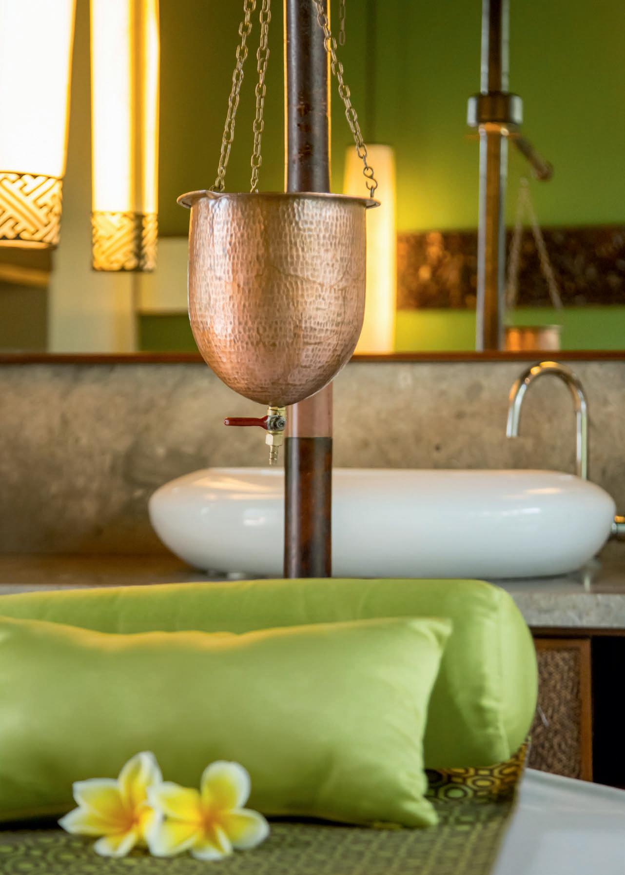 Abhyanga – Synchronmassage mit ayurvedischen Ölen. Abhyanga ist eine Ganzkörpermassage, die mit erwärmten Kräuterölen und oftmals traditionell als Synchronmassage durchgeführt wird. Je nach Körperregion auch Padabhyanga (Fuß-), Mukabhyanga (Gesicht), Shiroabhyanga (Kopf-), Nabiabhyanga (Bauch).