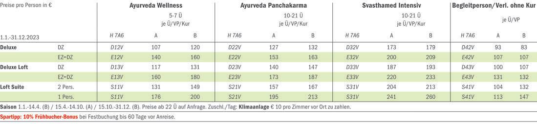 Ayurveda Resort Mandira ****S 108 Hotel Fontana & Ayurveda-Zentrum 102