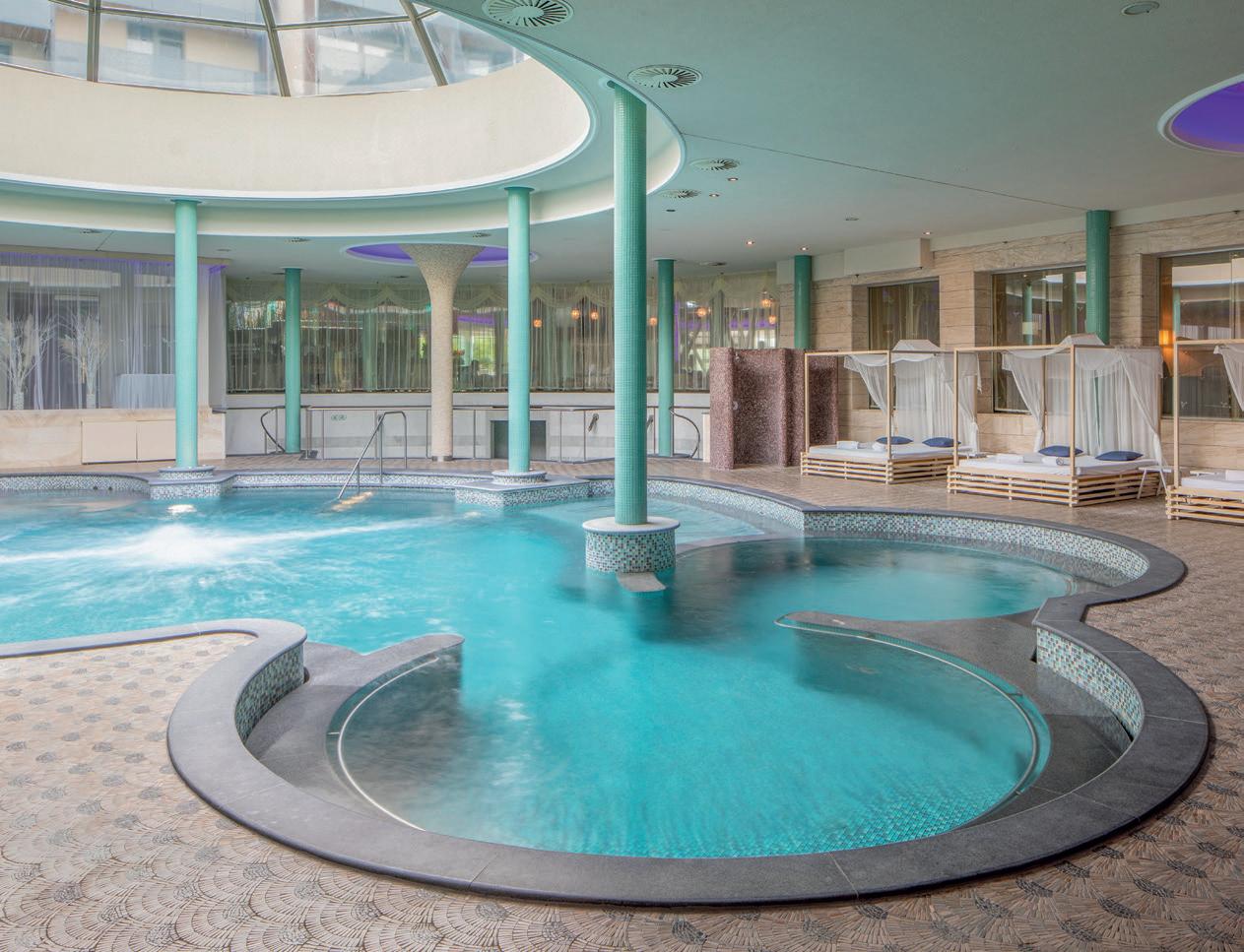 WELLNESS & SPA Innenpool (25 x 10 m, 28°C), Whirlpool, Dampfbad, Finnische Sauna (8-12/15-20 Uhr), Salzgrotte, Kryosauna, Kneippbecken, Fitnessraum, Personal Trainer. Nordic Walking, Yoga und Pilates. BEAUTY Kosmetik und Friseur. Thai-Massage-Zentrum. Kosmetikprodukte von Phytomer, Orlane, Dior, Asklepion.