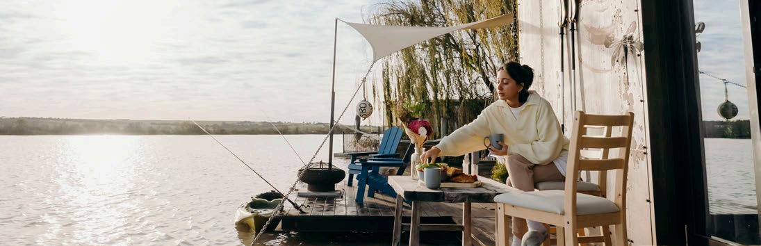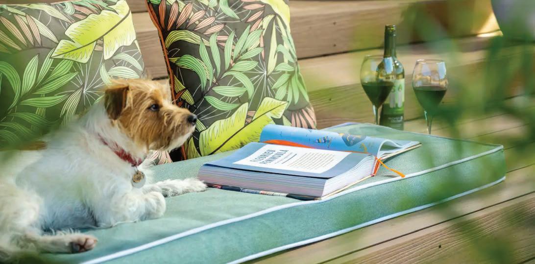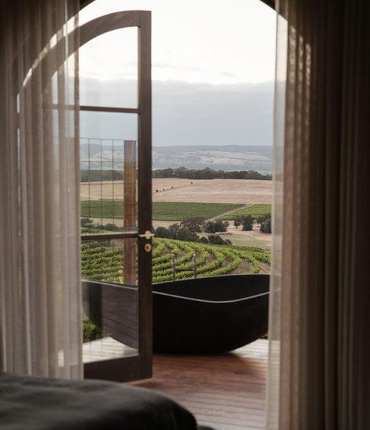 Nestled among the rolling hills between Maslin Beach and Port Willunga on 12 acres of land is Casa Feliz, offering two accommodation options – a dual-loft tiny home and a quaint twobedroom cottage. Both options can sleep four people and both welcome friendly dogs to stay inside on their own bedding. Guests can watch over their pets from relaxing Nicaraguan hammocks or the outdoor bath if they’re staying in the tiny home. Dog bowls and poop bags are also provided, so during your visit you are able to enjoy the >