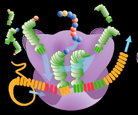 Pro všechny buněčné organismy je společný mechanismus realizace jejich vlastností pomocí exprese genů , tedy procesu, kdy se podle informace v DNA (v genech) vytvoří „pracovní“ molekula mRNA a podle ní se na ribozómech vyrábějí proteiny – bílkoviny. Celý proces proteosyntézy (translace) je založen na principu překladu informace z jazyka nukleových kyselin (tj. pořadí nukleotidů , jejich stavebních kamenů) do jazyka bílkovin (tj. pořadí aminokyselin v bílkovinách). Vzniklé bílkoviny pak fungují jako stavební (strukturní) molekuly, nebo jako molekuly s nejrůznějšími funkcemi, včetně funkce enzymů, tedy katalyzátorů všech reakcí v živých systémech. Takže za všechno, co jsme, můžou proteiny (a RNA). Celý proces je naznačen na obrázku ( 5/3 ) a důkladně vysvětlen až dále ( kap. 206).