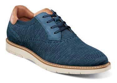 Knit textile with nubuck and smooth leather upper, unlined shoe, fully cushioned, removable Comfortech footbed with high rebound foam and molded EVA for long-term wearability, lightweight blown rubber outsole with rubber traction pod and Flexsole Technology for outof-the-box comfort.