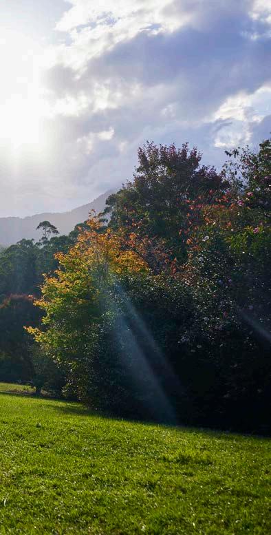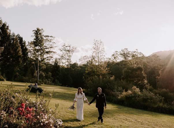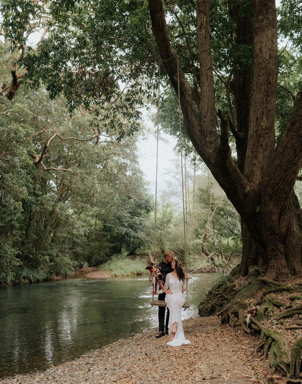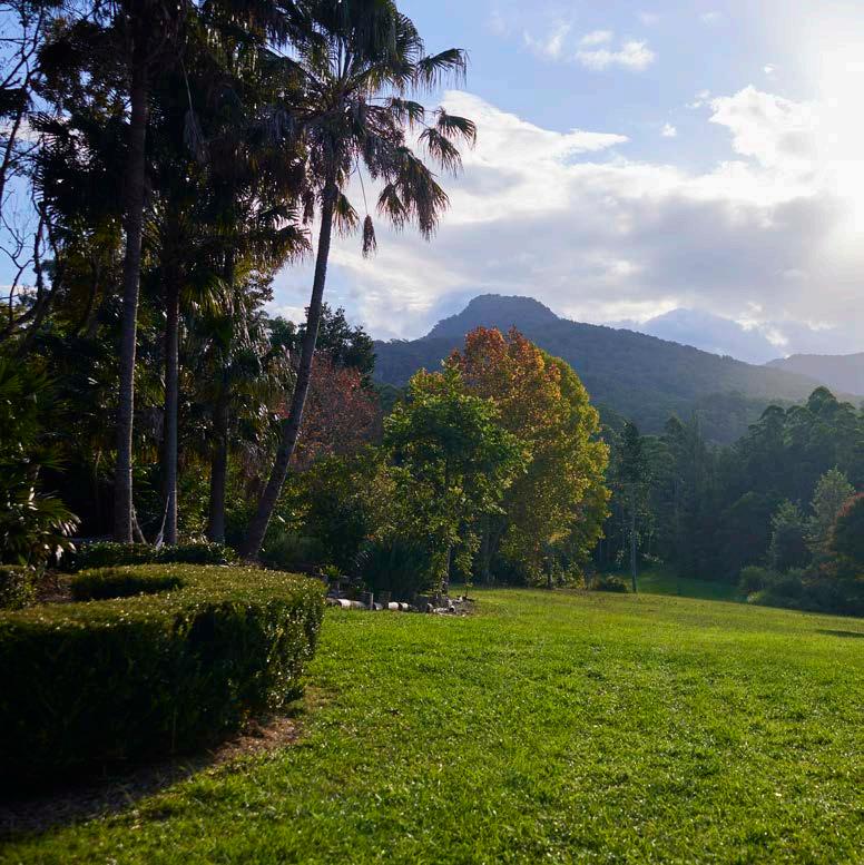and homestead but the nature too, this area is one of Australia’s most beautiful landscapes. Being nature lovers, the sustainability of the property is a priority, we run almost entirely on solar power and rain water. We love swimming in the Never Never River daily, and sitting on the verandah with the sunset view of Ngali, Old Man Dreaming mountain which is sacred to the Gumbaynggirr people, and to us as well. We’ve fallen in love with the birdlife and have the privilege of being serenaded from dusk till dawn by black cockatoos, king parrots, satin bower birds and an array of native birds. The warm colours of Autumn are also breathtaking. Of course the work is never ending and on top of managing retreats, weddings and Airbnb,