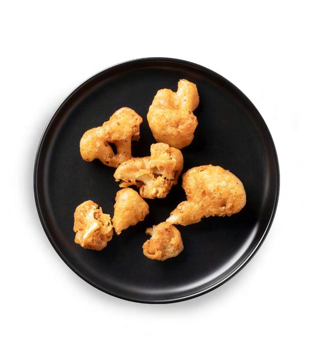 Cauli W’ngz are large, pickled caulifower forets with a clear, crispy coating that’s perfect for creative saucing or dunking.