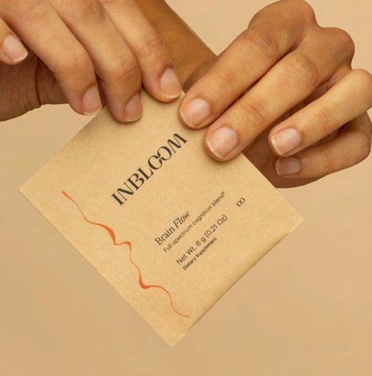 Another sustainability feature of the product ofers single serves and enviro-pouches for reflling the powders. The fully degradable biopouch (18 months), developed by INBLOOM, sets the company apart. Hudson knew many consumers would place the packaging in their recyclable bins and believed they were helping the planet. However, as Hudson researched recycling more deeply, she discovered that many papers and pouches needed to be sent to a specialized recycling center, and many ended up in a landfll. Hudson recognized the importance of creating the correct recyclable pouch.