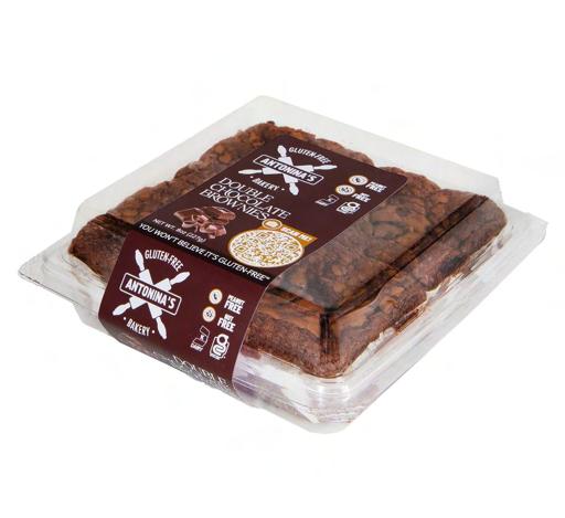 Whether it’s a treat for your bestie, a dessert for a night-in with your partner, or a school-safe option for the classroom party, the double chocolate brownies from Antonina’s Gluten-Free Bakery taste incredible. Rich cocoa combines harmoniously with semi-sweet chocolate chips to elevate these brownies to a level of pure decadence. Take one bite, and you’ll see why the company says, “You won’t believe it’s glutenfree. ertifed gluten free by the luten ree ertifcation rganization . ind them online, as well as in grocery stores and bakeries nationwide. For store locations, visit www.antoninasglutenfreebakery. com.