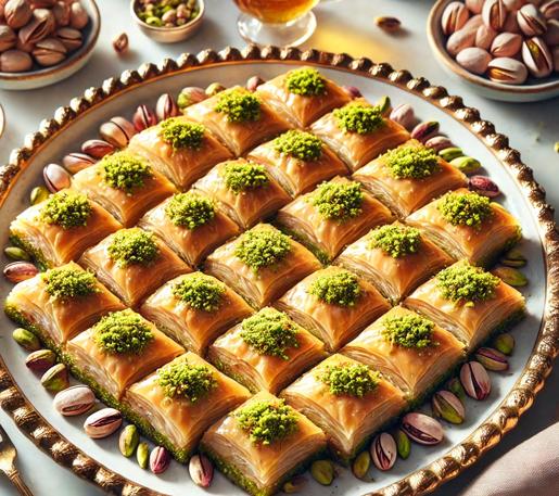 Artemis Mediterranean Bistro’s Pistachio Baklava is a rich and delicious dessert made from layers of thin, faky phyllo dough, flled with a miture of ground pistachios and sugar, then baked and soaked in a fragrant syrup made of sugar, water, and sometimes a touch of lemon or rosewater.