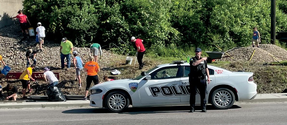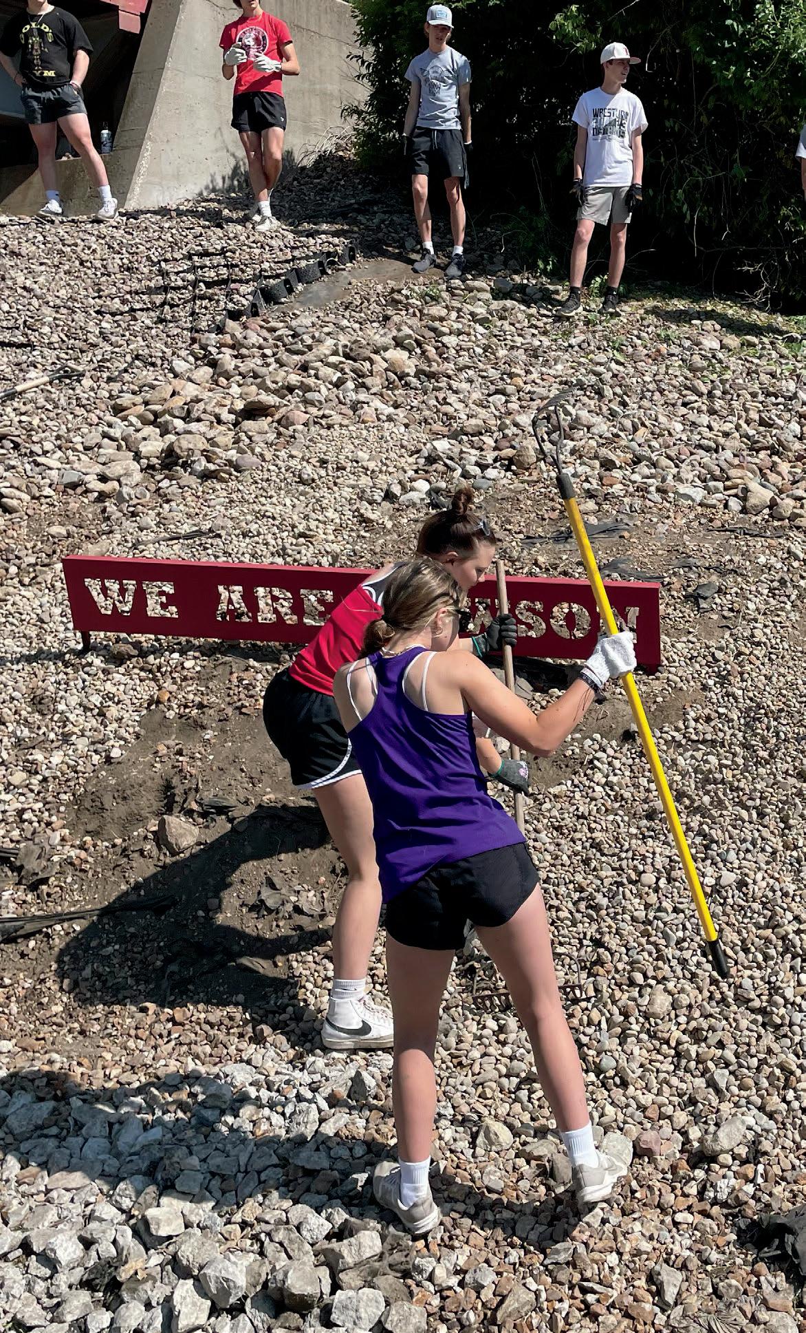 Lawson High School sports teams focused on some volunteer work this summer with the major project focusing on freshening up the L hillside on D highway. Volleyball, softball, wrestling (girls and boys), cheer, football, and baseball teams came together to haul rock, lay rock, paint, weed, muck, and pick up trash on and around the L hillside. The hillside was a project from 2015 that LHS came together