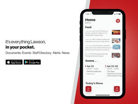 Weekly events and results, course information, sports schedules, school calendar, pictures, lunch menus, and much more! check us out onLIne: lawsoncardinals.org @Lawson.GoCardinals @LawsonGoCards 11