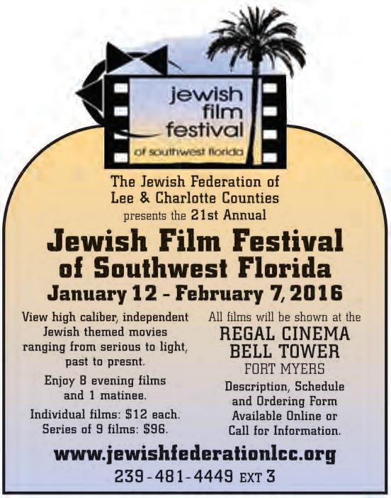 The Jewish Film Festival of Southwest Florida is offering tickets for all nine films at a discount. The Regal Cinema Bell Tower is located at 13499 Bell Tower Drive in Fort Myers. For information, call 481-4449.