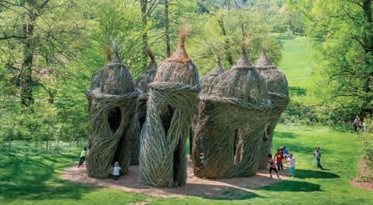 Dougherty’s one-of-a-kind interactive sculptures, woven from tree saplings. His unique works of art truly become part of the landscape. He often uses materials native to the surroundings to create his transitory works of art, each unique to their location.