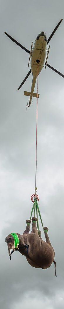 The return of Chilunda: this young bull had escaped from the North Luangwa National Park to an area where he ran a high risk of being poached. A large operation, including two helicopters, was completed, bringing him 220km home by sling. This is the longest distance that a rhino has been transported in this way and the first time ever in Zambia. This was all made possible by collaboration between FZS, the Department for National Parks & Wildlife, the Zambian Airforce, Conservation South Luangwa, Niner Juliet Logistics, and with expert advice from rhino vet Dr. Markus Hofmeyr.