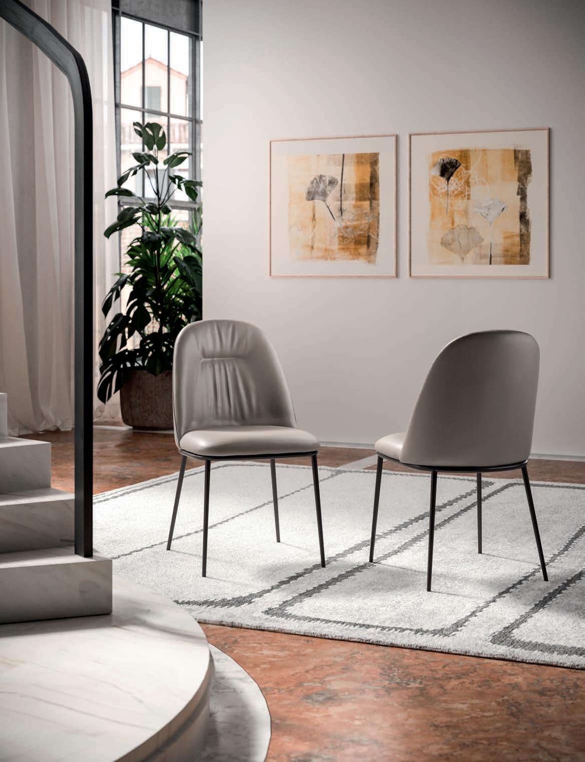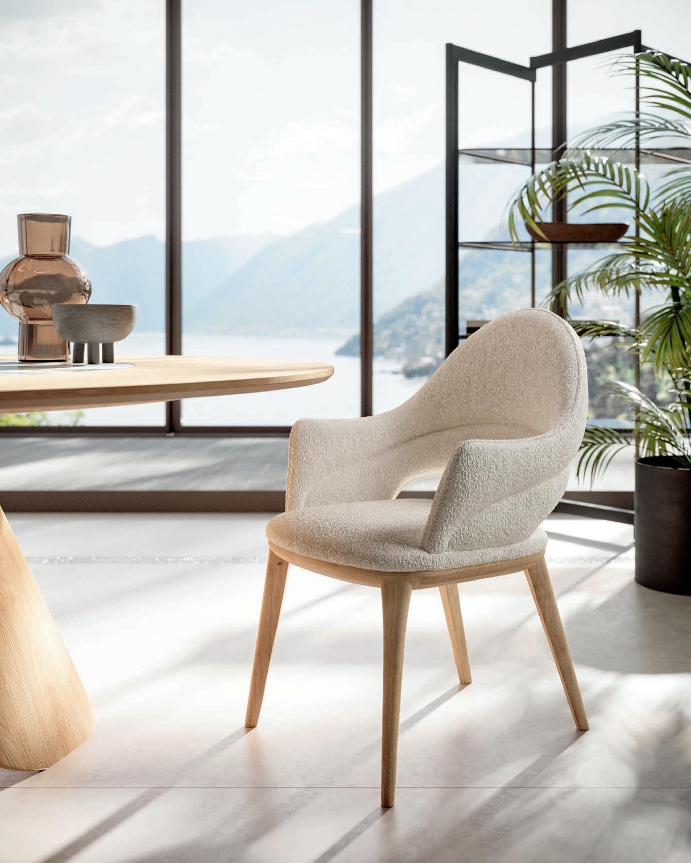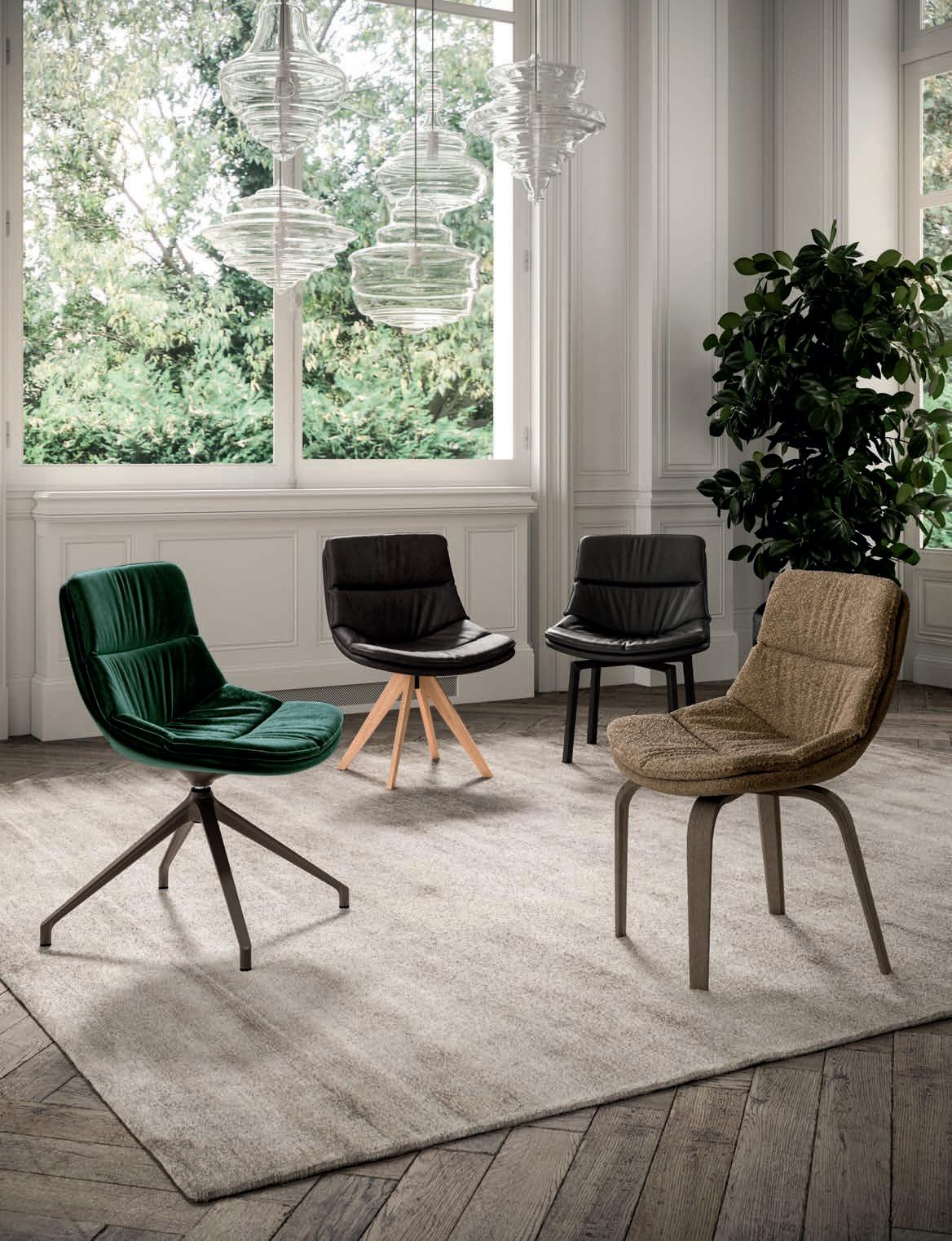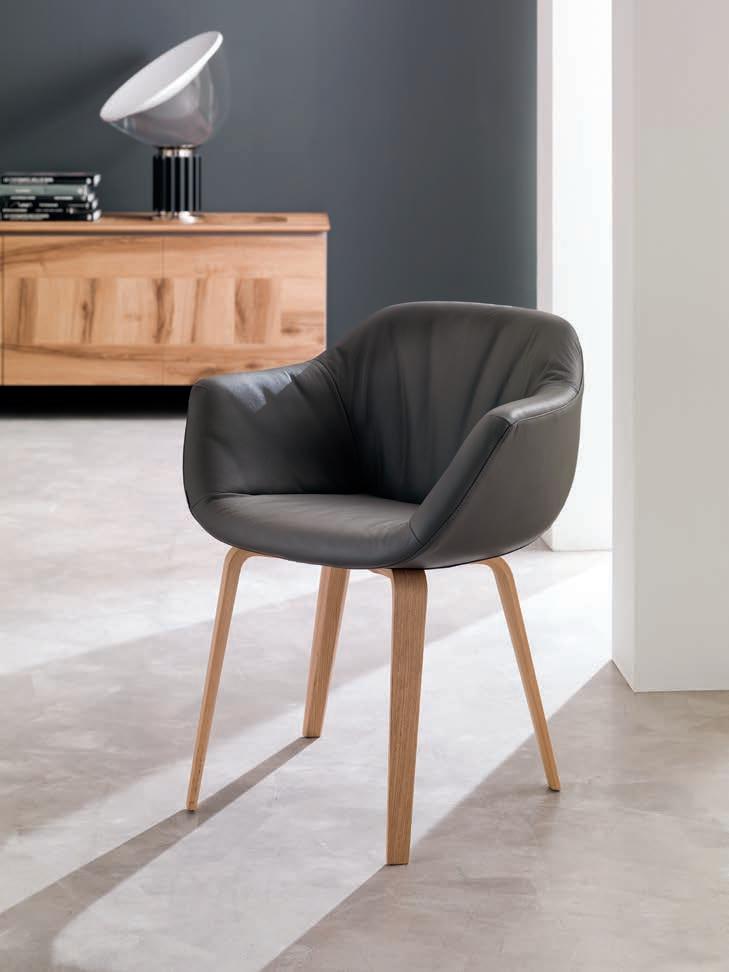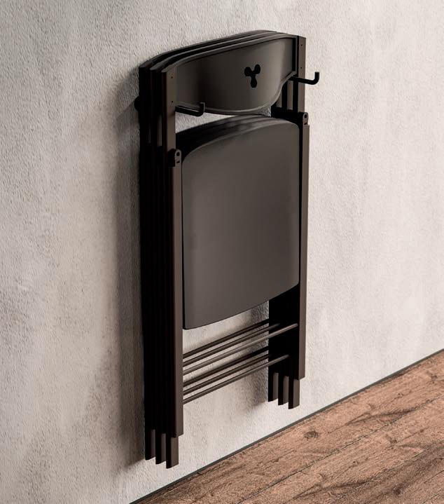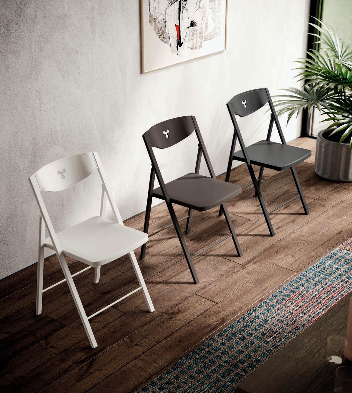 If there is an object that represents design in its purest sense, that object is the chair. Chairs with and without armrests, fi ed and folding models, revolving or with return mechanisms, chairs t at fit for a itc en, a dining room and a living area too. Form and substance, passion and technology come together in this expressive variety.