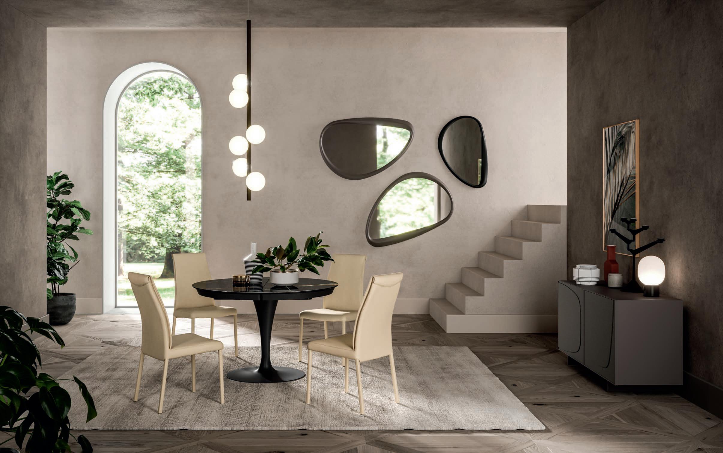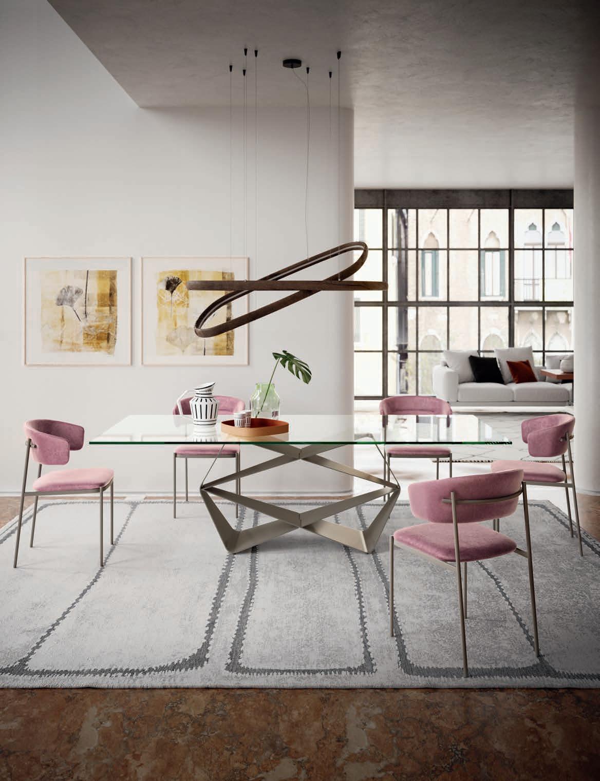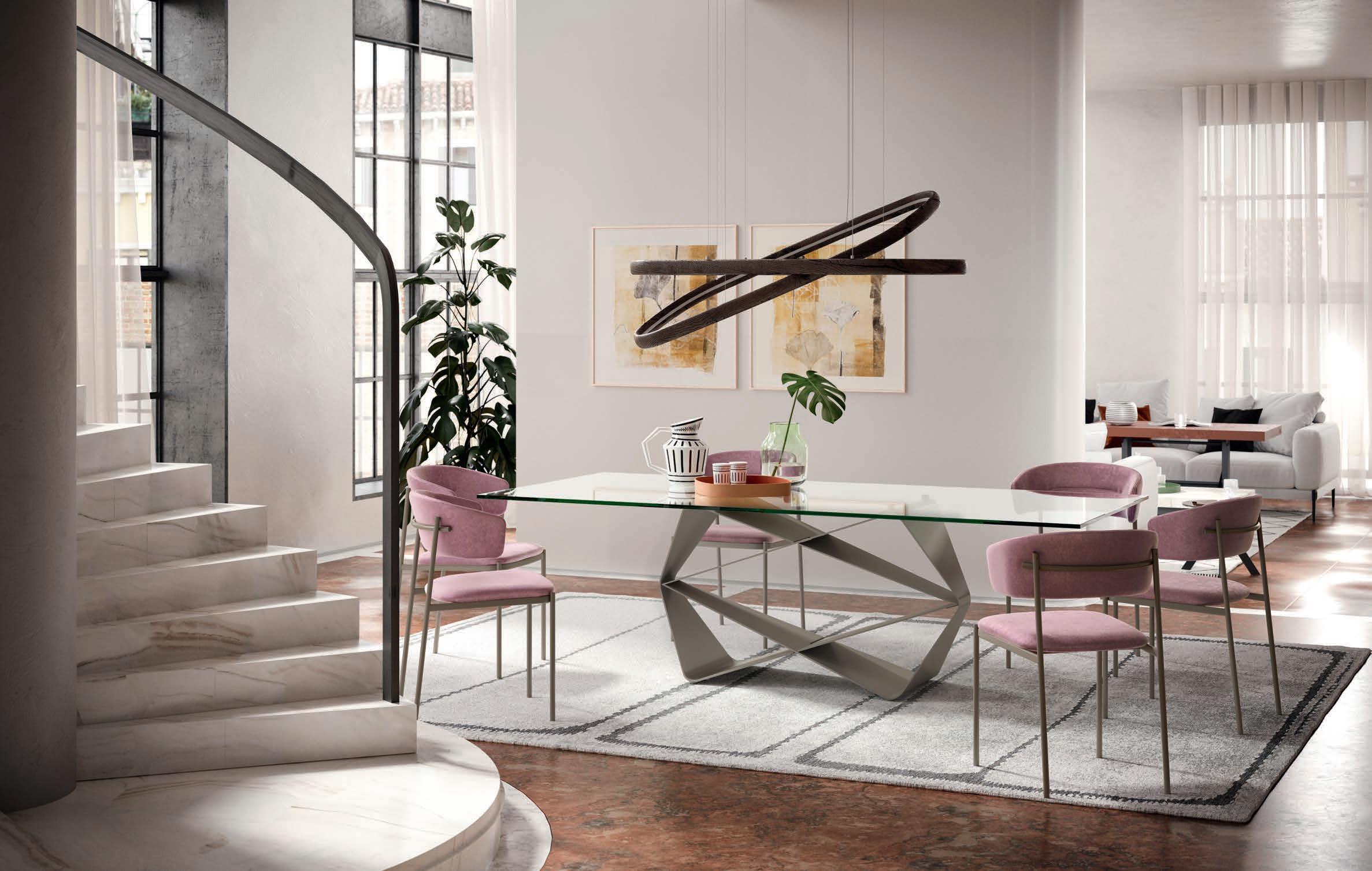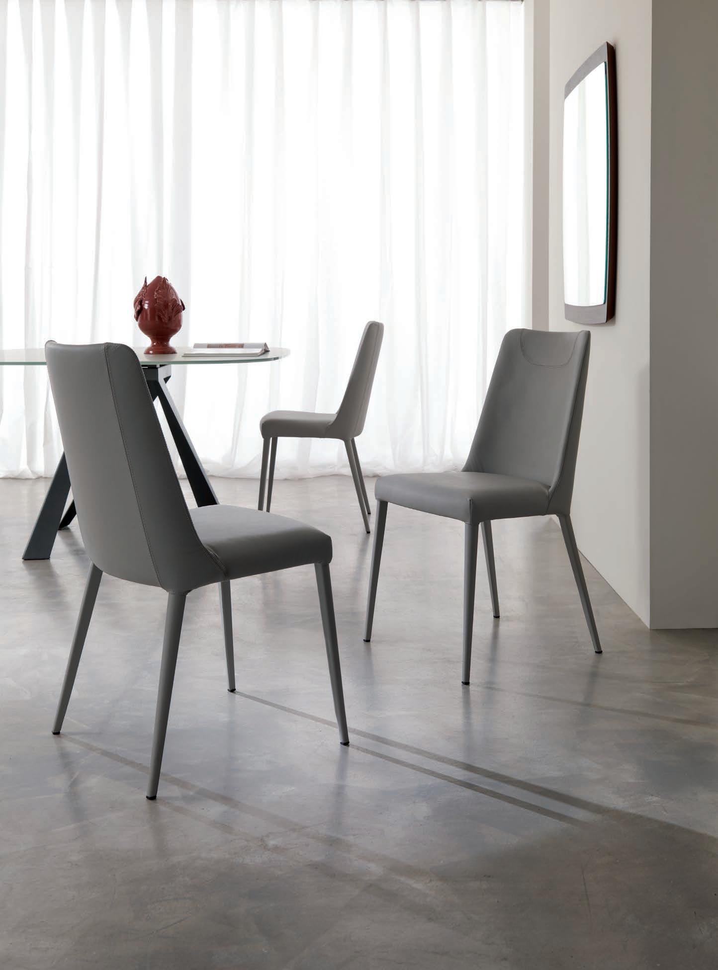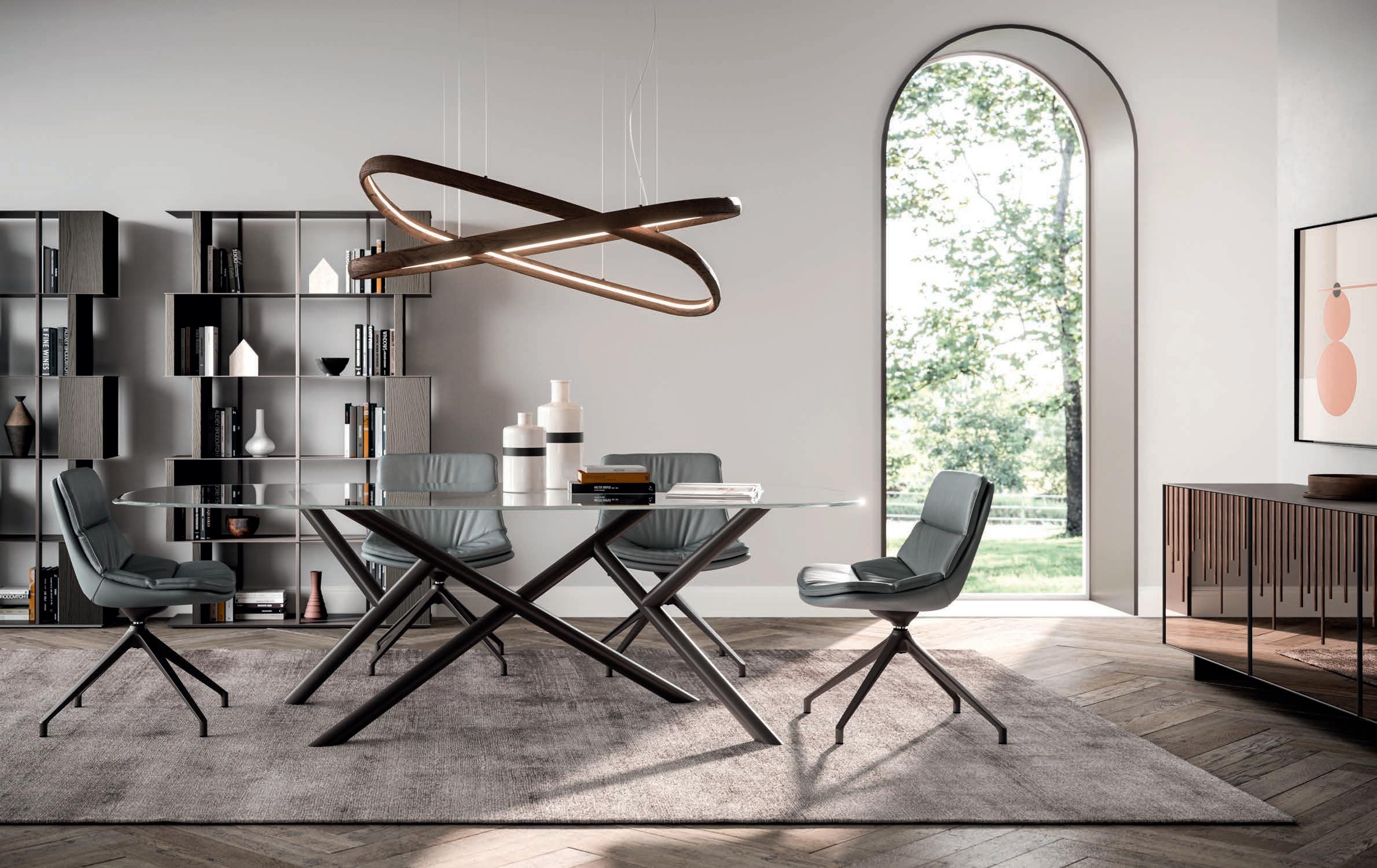 If there is an object that represents design in its purest sense, that object is the chair. Chairs with and without armrests, fi ed and folding models, revolving or with return mechanisms, chairs t at fit for a itc en, a dining room and a living area too. Form and substance, passion and technology come together in this expressive variety.