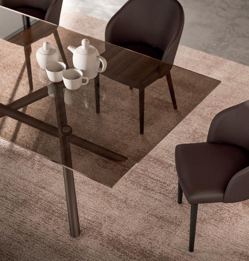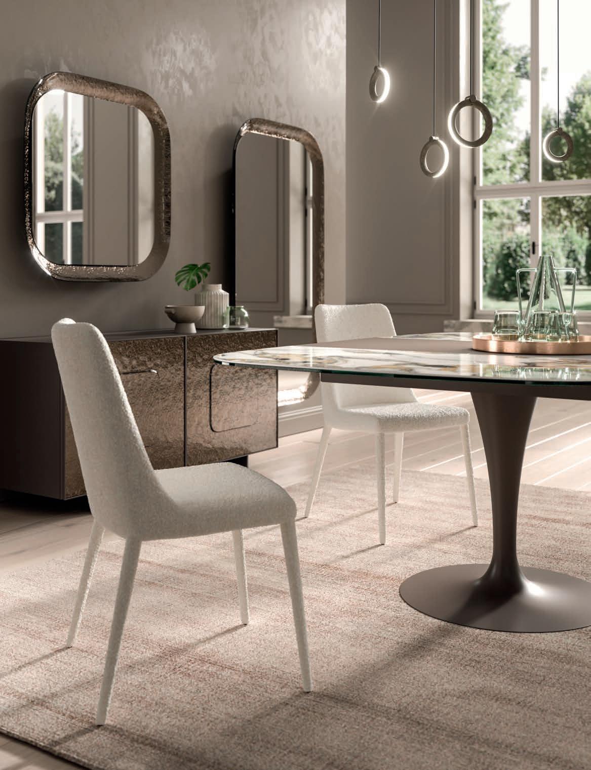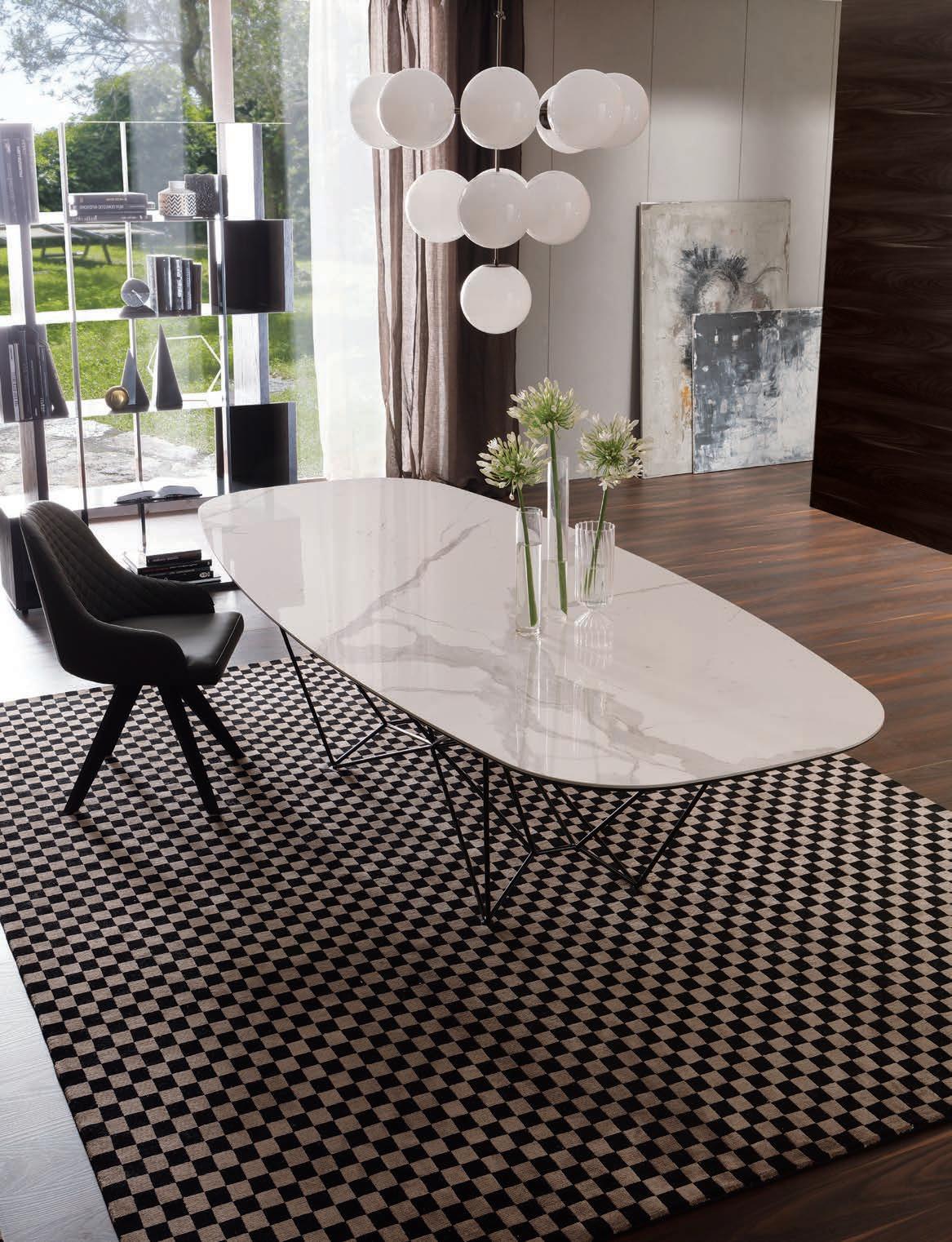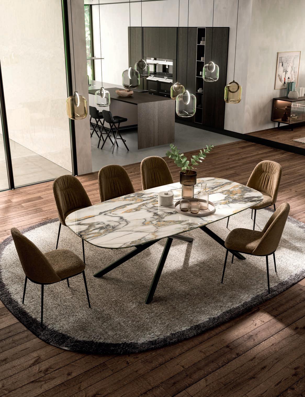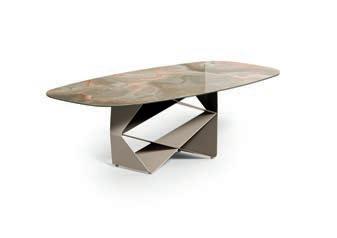 Il top di alcuni tavoli così come diversi piani e ante delle madie della collezione OZZIO ITALIA sono rivestiti in ceramica o Marble Glass. ue materiali di valore, per superfici compatte e monolitiche, dal mood naturale, c e ri ettono la luce dell’ambiente ed esprimono tutta la ricercatezza di un lusso quotidiano che esalta il design dello spazio.