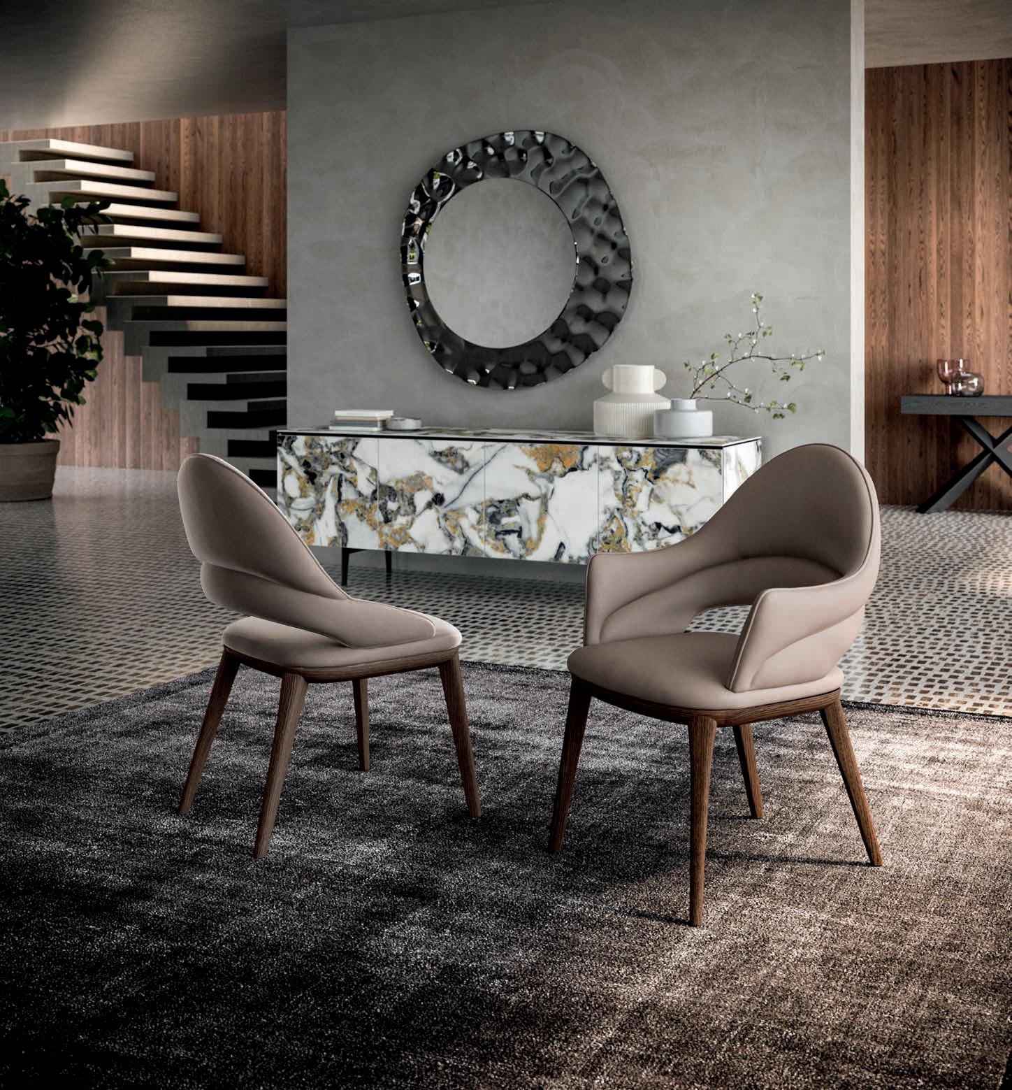Fully upholstered chair in various finishes. Dyed beech structure.
