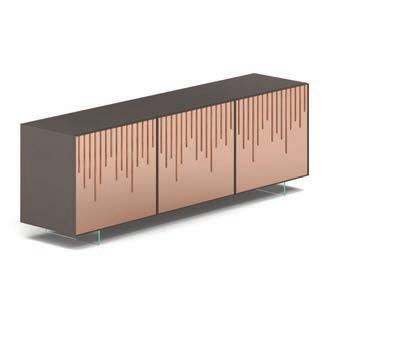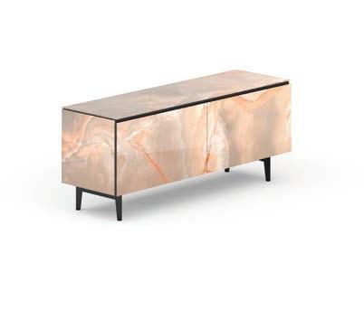 The top of some tables as well as di erent surfaces and doors of the sideboards from the OZZIO ITALIA collection are covered in ceramic or arble Glass. Two valuable materials for compact and monolithic surfaces with a natural mood, which re ect the light of the environment and express refinement. A daily luxury that highlights the design of your space. rom a technical point of view, ceramic is laminated porcelain obtained by wet grinding of clayey raw materials, granite and metamorphic rocks and ceramic pigments, all pressed together and cooked at extremely temperatures to o er maximum resistance. eramic is a natural and recyclable material, free from organic pigments.