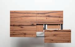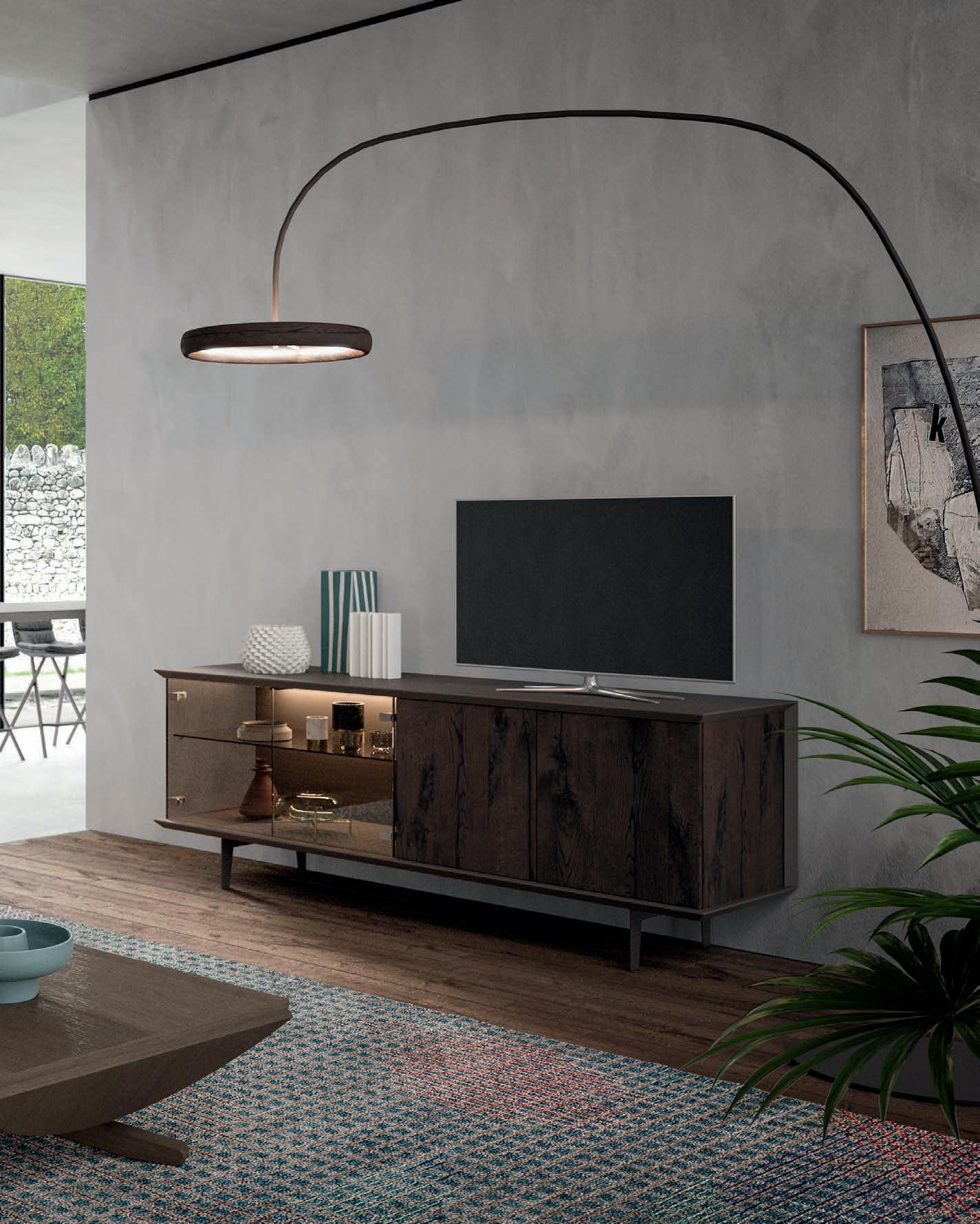 A lot of products are made from solid wood parts or veneered parts with slabs of real wood applied on panels in chipboard or pulveri ed wood fiber. The finish is given by a transparent or opaque varnish that protects and enhances the natural look of wood.