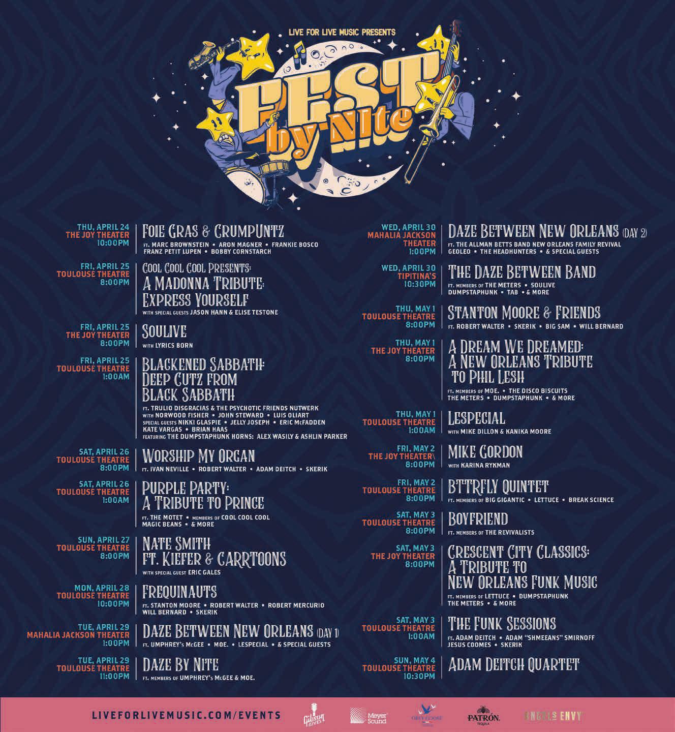 BAMBOULA’S Aaron Levinson & Friends, 10:30 am; Youse, 1:15 pm; Midnight Brawlers, 5:30 pm; Les Getrex & Creole Cooking, 9 pm