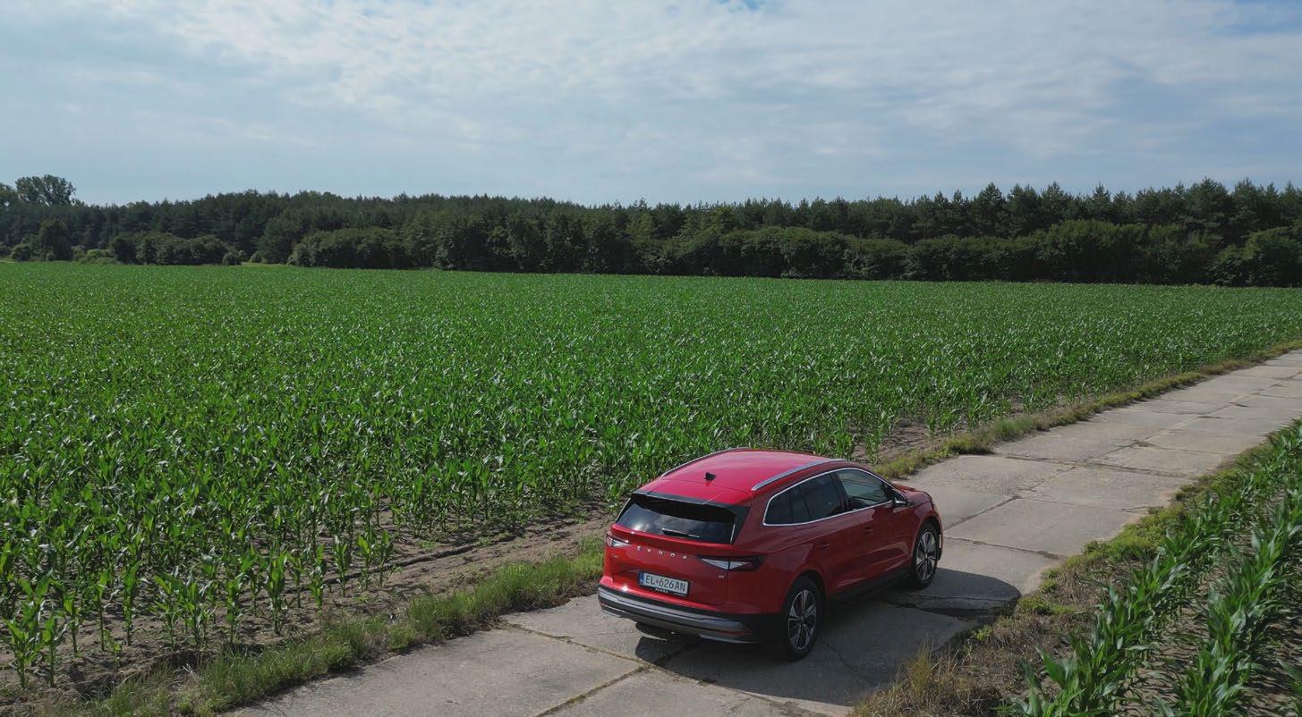 nového elektrického SUV z Mladej Boleslavi je umiestená batéria s kapacitou 82 kWh (využiteľných 77), ktorá má papierový dojazd zhruba 565 km. Jedna vec sú WLTP merania a druhou je samotná prax. Počas tých siedmich dní, čo som testovanú vzorku preháňal nielen po Záhorí, ale ako píšem vyššie, aj výrazne mimo slovenských hraníc, som na jedno nabitie pri striedmej rýchlosti (100 km/h) a teplote nad 20°C, dokázal s prehľadom prekročiť magickú hranicu 500 km/h. Kombinovaná spotreba sa pohybovala od 15 do 16 kWh na 100 km/h). Viac než to ma však fascinovala presnosť odhadu dojazdu, s akou sa nový Škoda softvér prezentoval - tu ten praskot bubliny bol priam ohlušujúci. Mohol som s autom doslova letieť po diaľnici, napriek tomu však dojazd odrážal realitu a nestrácal kilometre ako šialený. Čo sa týka rýchlosti nabíjania, tak tu máme maximálku na hranici 125 kW, kde sa z minima desiatich percent viete dostať na osemdesiat percent už behom necelej pol hodinky. Takže káva, záchod, zadumaný pohľad na uhrančivú prednú kapotu vysádzanú uschnutým hmyzom a letíme ďalej.