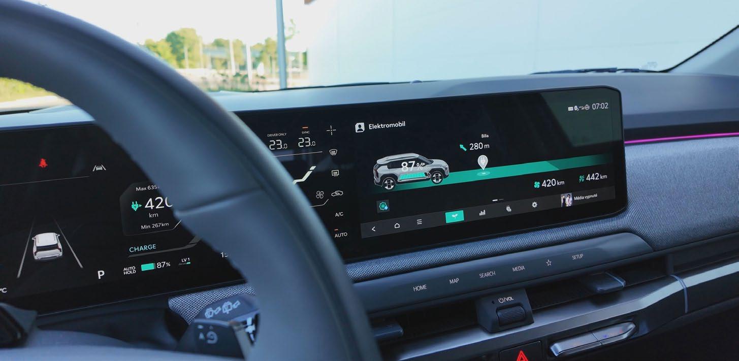 panela úplne ignorovať fyzické spínače. „Chcem zmeniť teplotu klimatizácie?“ Musím sa prehrabať niekoľkými vrstvami menu. Je to rozhodnutie, ktoré obetovalo funkčnosť v prospech dizajnu. Krásna augmentácia, ktorá však svojmu nositeľovi občas sťažuje život namiesto toho, aby mu ho zjednodušila. Pre mňa je to dokonalá metafora technologickej dystopie, keď sa forma odpojí od funkcie. Napriek tomu však tento systém skrýva záblesky brilantných nápadov. Zvláštny, takmer šesťuholníkový volant možno pôsobí ako dizajnový úlet, no jeho ovládanie je mimoriadne precízne a intuitívne. Je zapamätateľný a odvážny ako celé auto, ale ešte viac ma na ňom potešilo rozloženie klasických spínačov. Umožňuje vám nastaviť si vlastnú skratku na niektorú často používanú funkciu a čiastočne tak ovládať dôležité veci v menu.