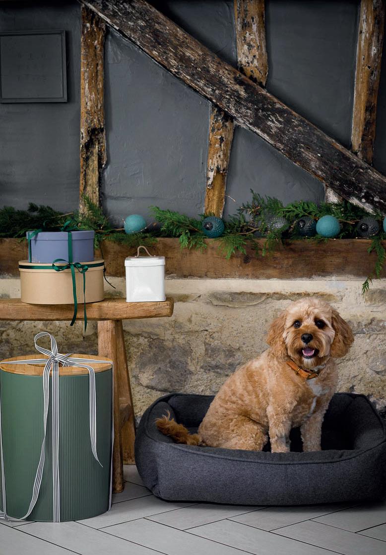 Furry Friends Langley Pet Bed, Medium £75 | Stowell Pet Treat Tin £12 Kinloch Pet Bin, Medium in Thistle Green £55 Leafield Dog Collar, Medium £46 Kinloch Grooming Bucket in Thistle Green £22 Stowell Pet Bin, Medium £45 | Kemerton Pet Bowl, Small £12 For your Scent of the season Night In Kit Hazleton Cushion, 30 x 50cm in Forest Green £25 Nutmeg, Orange & Cinnamon Hillesley Candle £55 Ballater Throw £60 | Ablington Lantern, Small £25 Set of 6 Dinner Candles £10 | Amber Glass Diffuser £8 The perfect 01993 845559 | gardentrading.co.uk | 15
