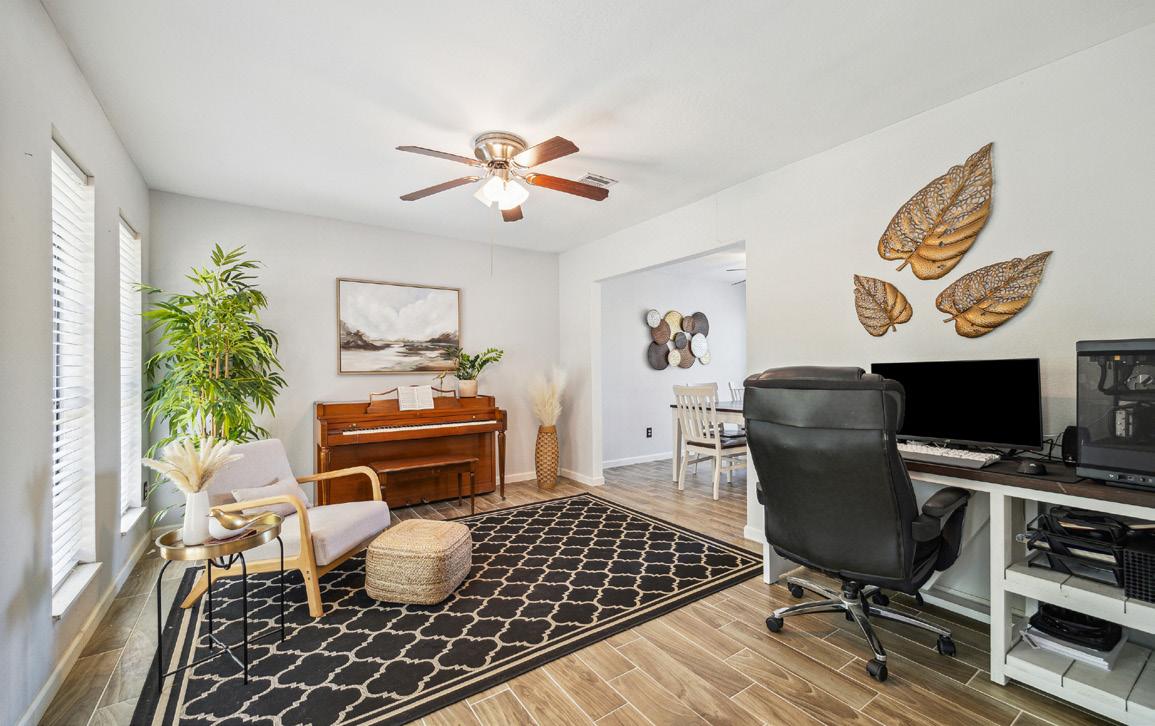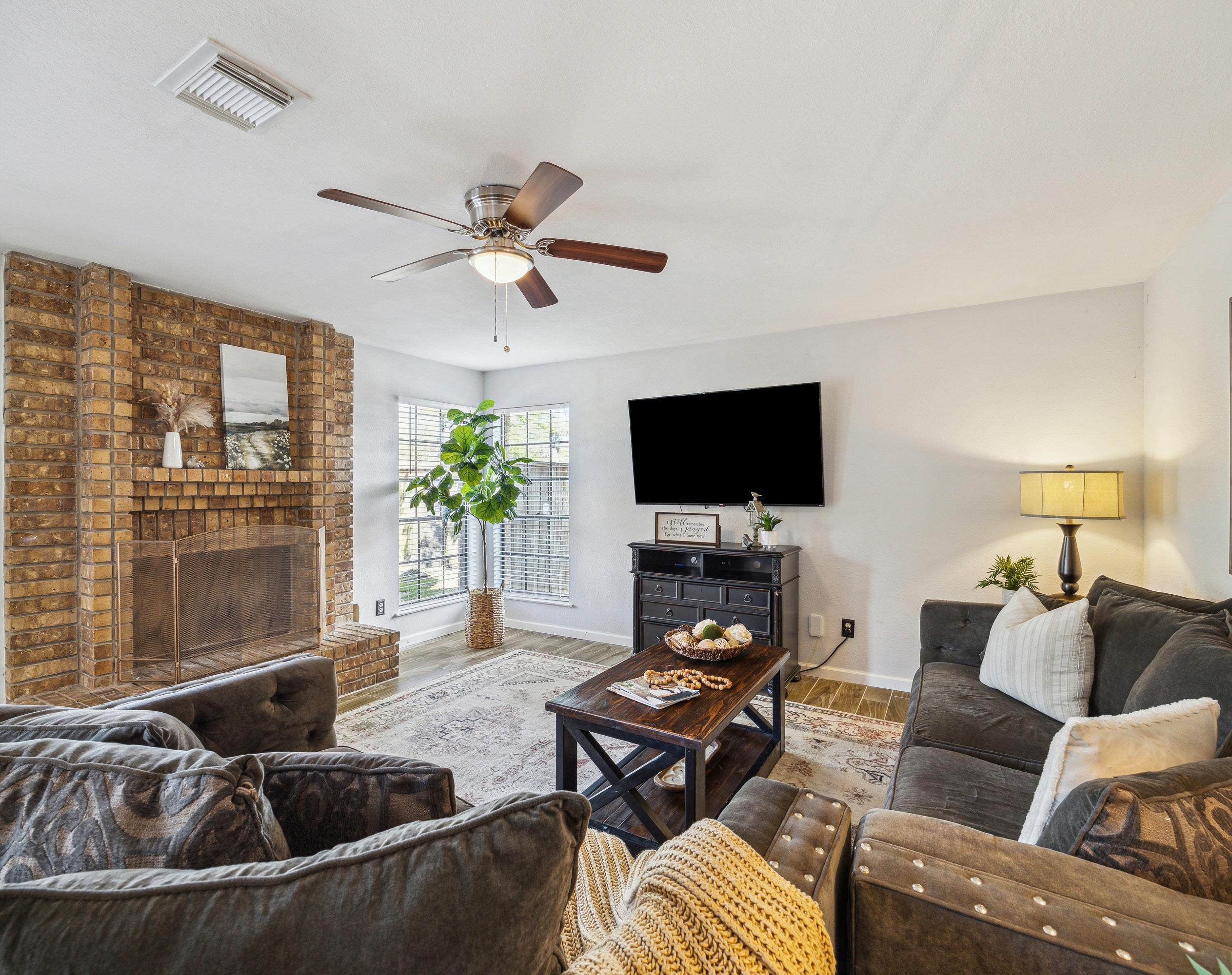 Step inside this 3 bedroom, 2.5 bath home, & be greeted with wood-like tile flooring throughout the first floor. The open concept family room is spacious & complete with a cozy fireplace & flows seamlessly into the updated kitchen, with granite countertops & SSTL appliances making it easy to entertain guests while preparing meals. This home has you covered with both a formal dining room for special occasions, as well as a flex room that can be used as an office, playroom, or second living space - the possibilities are endless! Laminate flooring flows throughout the second floor where you will find a large owners retreat with ensuite bath & two secondary bedrooms that share a full bath. The backyard is fenced where you can relax in peace or host BBQs with friends - NO BACK NEIGHBORS. Conveniently located near the park, greenbelt, elementary school, & pool - everything you need is right at your fingertips.