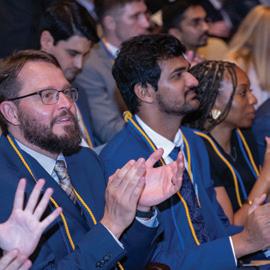 The 2024–2025 academic year at the McDonough School of Business has been defined by innovation, momentum, and community impact. We proudly launched the HOME program, further strengthening our commitment to inclusion and belonging, and celebrated the inaugural Mentored Opportunities Research Experience (MORE) program to expand students’ engagement with the research community. We added targeted programming and student leadership opportunities through the Kosoy Women in Business program, which offers professional development, mentorship, and career support for our community. With global travel back in full swing, students once again immersed themselves in transformative international experiences central to a McDonough education. Together, these milestones highlight our school’s commitment to preparing principled leaders ready to thrive in a diverse, global environment.